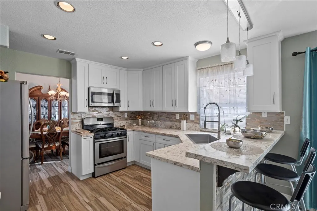 Welcome to this beautiful two-story home located in one of Victorvilles fastest-growing and most desirable neighborhoods! This spacious property features 3 well-sized bedrooms plus a versatile den perfect for a home office, guest space, or additional living area. From the moment you enter, youre greeted by soaring ceilings and an abundance of natural light, creating a bright, open, and inviting atmosphere. The dining area flows seamlessly, ideal for both entertaining and everyday comfort. The kitchen offers ample cabinetry, granite countertops, and a breakfast bar that opens to the family room. The open-concept layout continues into a cozy living space with a fireplace, perfect for relaxing evenings. The primary suite offers a private retreat with direct access to its own balcony, ideal for enjoying peaceful mornings or sunset views. The en-suite bathroom features dual sinks, a soaking tub, and a separate glass-enclosed shower. Find convenience with an individual laundry room, with a functional layout and storage. Step outside and experience the true highlight of this home, an expansive, beautifully designed backyard featuring custom stonework, mature landscaping, and a covered gazebo perfect for outdoor dining, entertaining, or creating your own private oasis. One of the standout features is the spacious 3-car garage with extended driveway parking, currently set up as a functional workspace/studio ideal for additional flex space (easily adaptable back to full garage use if desired). Conveniently located near shopping centers, restaurants, parks, schools, and the Mall of Vi