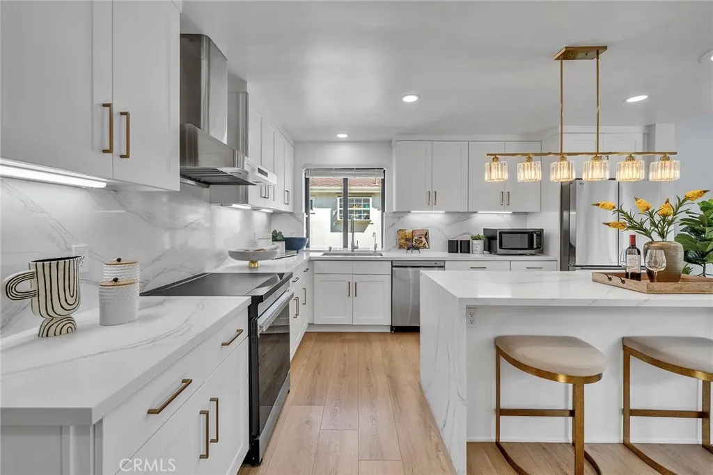 Beautifully high-end renovated single-level home. Located within the highly sought-after Arcadia School District. Offering 3 bedrooms, 2.5 bathrooms, a spacious main bedroom separated from 2 other bedrooms. The large living room, a 10 ft high ceiling family room and formal dining area with a luxury designer chandelier are perfect for entertaining. Boasting Striking Curb appeal with attractive landscaping, and a long private gated driveway provides lots of parking space, and leads to the backside 2 detached oversized garage ( with 220volt outlet, ready for EV ) The courtyard and new backyard landscape created a sense and spacious retreat. This home features a premium Metal Roof, Solid interior doors and double pane windows. A no-expense-spared renovation, including plumbing (cooper pipes), electrical wiring and panel, kitchen, bathroom, floors, ductwork, insulation in attic, designer light fixtures, along with interior painting. Detailed invoices are available. This move-in ready with modern upgrades residence features an excellent floor plan with abundant natural light and stylish contemporary finish throughout.