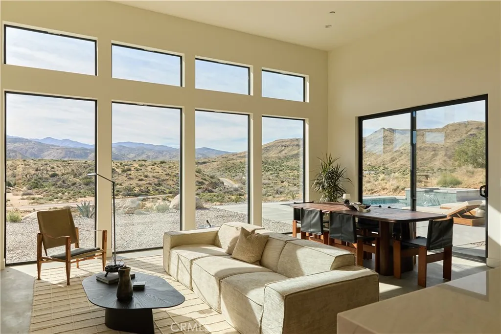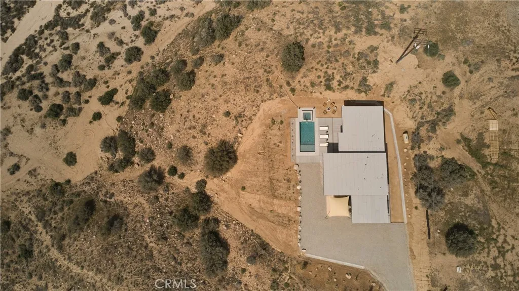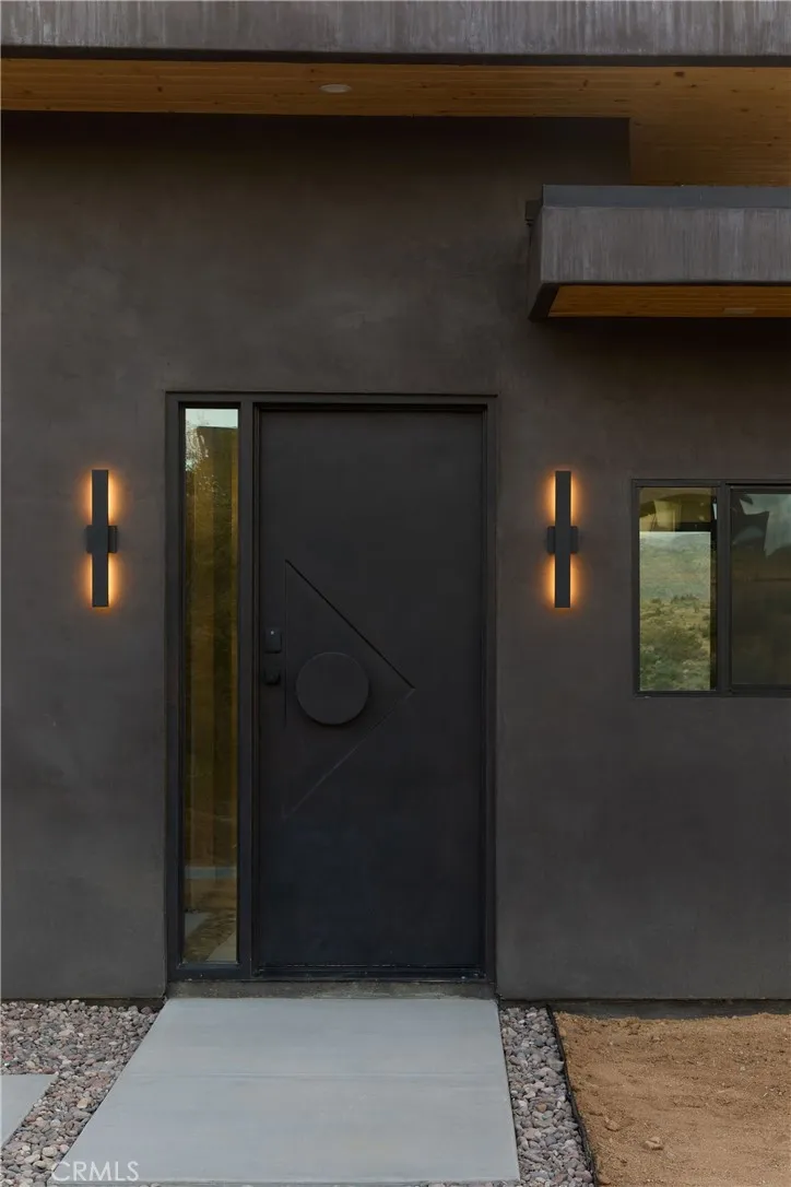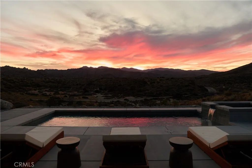 Welcome to Sorrel House, a custom-built architectural estate, set atop a bluff bordering protected Wildlands Conservancy and Pioneertown Mountains Preserve acreage that could remain untouched for generations. The views from this property are some of the finest in the hi-desert. Designed with a contemporary modern, minimalist/brutalist aesthetic, the home draws inspiration from Frank Lloyd Wrights philosophyof the hill, not on the hillseamlessly integrating structure and landscape into Organic Modern design. The Santa Barbara smooth-finish stucco wrapping the home mirrors the tone of the surrounding buttes, creating a striking yet harmonious presence. Inside, custom earthen plaster walls, concrete floors, and hand-crafted white oak cabinetry deliver a refined, tactile desert-luxe experience. Oversized white oak doors and expansive sliders in every bedroom open effortlessly to the pool terrace, dissolving the boundary between indoor and outdoor living. The resort-caliber exterior features a large in-ground pool with waterfall spa, and a shaded dining pavilion just off the kitchenperfectly oriented for sunrise coffees, golden hour dinners, and stargazing nights. The primary suite is a true sanctuary, with floor-to-ceiling tadelakt plaster, dual showers, and a dramatic wall-sunken overhead rain shower. Additional highlights include 3 bedrooms, 2.5 baths, a dedicated laundry room, and a large garage currently laid out as a yoga / fitness studio. Thoughtfully landscaped with native desert flora for beauty and low maintenance. Offered fully turnkey furnished. Bonus parcel with fla
