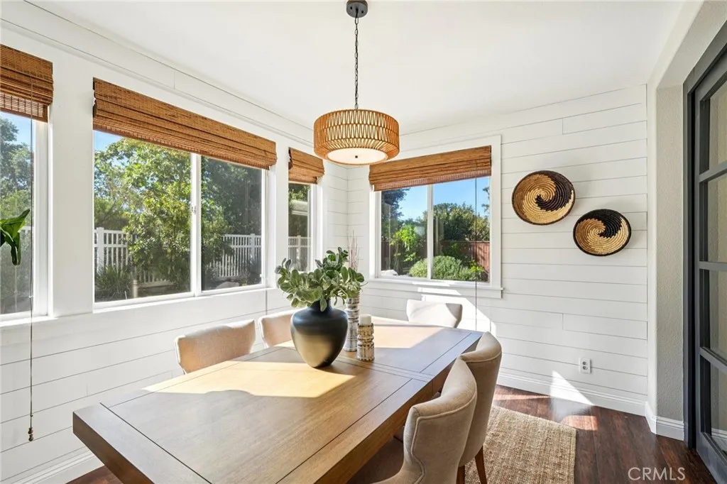 Welcome to this stunning 5-bedroom, 3-bathroom home located in the highly sought-after Paseo Del Sol community, offering exceptional curb appeal and a rare combination of both a 2-car and separate 1-car attached garage. A private, paved courtyard creates a warm and inviting entry into the home, where youll find soaring ceilings, plantation shutters, recessed lighting, a neutral color palette paint scheme, and rich wood-look laminate flooring throughout the main floor. The formal living room is filled with natural light, while the spacious family room features a cozy fireplace and a glass door to the backyard. The beautifully updated kitchen is a true centerpiece, showcasing quartz countertops, a large center island with bar seating, a striking herringbone tile backsplash, a pantry, and a charming breakfast nook. A separate formal dining room with stylish shiplap walls and backyard views provides an ideal setting for gatherings. The main floor is complete with a bedroom and a bathroom, offering flexibility for guests or multigenerational living. Upstairs, youll find four additional bedrooms, including a large primary suite with a luxurious, spa-inspired ensuite featuring dual vanities, a soaking tub, and a separate shower. The upper level also includes a full-size hall bathroom, a built-in office/study space, and a convenient laundry room with extra built-in storage. Step outside to enjoy the private backyard, complete with a covered patio, concrete and grass areas, and ample space to personalize and create your ideal outdoor retreat. Residents of Paseo Del Sol enjoy resort-