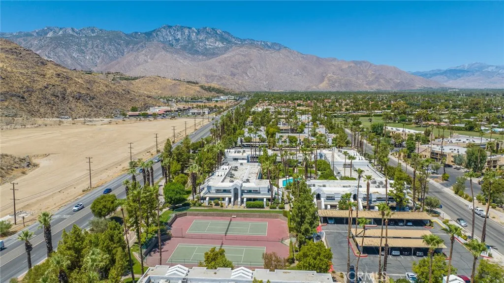 Experience effortless desert living in this impeccably maintained, fully furnished 2-bedroom, 2-bath ground-floor residence. Ideally positioned as a private end unit within a serene community, this home offers both tranquility and an expansive wraparound patioperfect for seamless indoor-outdoor living. Inside, the residence has been thoughtfully updated with quality finishes throughout. The remodeled kitchen features sleek quartz countertops, custom cabinetry, and stainless steel appliances. Both bathrooms have been tastefully upgraded with ample storage and a clean, modern design. Natural light fills the space through plantation shutters and an energy-efficient Vertiglide shade, while dual-pane windows enhance comfort and quiet. A full-size Samsung washer and dryer add everyday convenience. Residents enjoy access to four pools and spas, as well as tennis and pickleball courts, all set alongside a beautifully maintained golf course. Assigned covered parking is included, and nearby shopping, dining, and cafes are just a short distance away. This pet-friendly community permits short-term rentals with a 5-day minimum. HOA dues include water, trash, and grounds maintenance. Conveniently located near Tahquitz Creek Golf Resort with easy access to all that Palm Springs has to offer.
