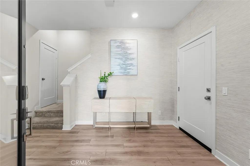 Located within the desirable Great Park community and close to the highly rated Portola High and Solia Park School (k-8th), this beautiful 4 bedrooms and 3.5 bathrooms corner unit townhome is highly upgraded and must be seen to be appreciated. Excellent natural lighting overflows the entire house with open concept Great Room, Dining Room and Kitchen. The first floor features a welcoming foyer with a spacious private bedroom and its own bathroom. The second floor showcases a beautiful kitchen with stainless steel GE Caf Appliances, Quartz countertop and a large center island. The open Great Room is attached to the balcony with expansive greenbelt and neighborhood view. Upstairs features the Primary en-suite with Walk in Closet. The two secondary bedrooms are generously sized and are thoughtfully designed away from the Primary Suite for privacy. Enjoy the resort like recreational amenities in Great Park including beautiful parks, multiple pools/ sports courts, BBQ and patio areas, playgrounds, an ice rink, a water park, walking trails and much more. Conveniently located near Woodbury Town Center and a future shopping center within the Great Park slated to open in 2027. Seller is very motivated! Bring me a reasonable offer!