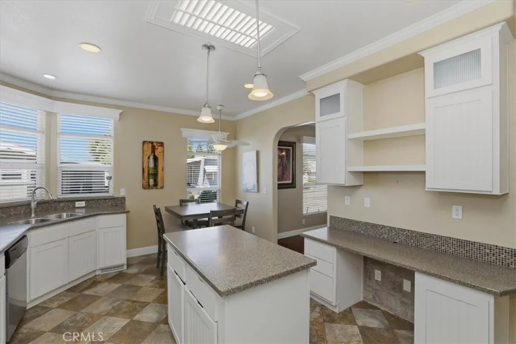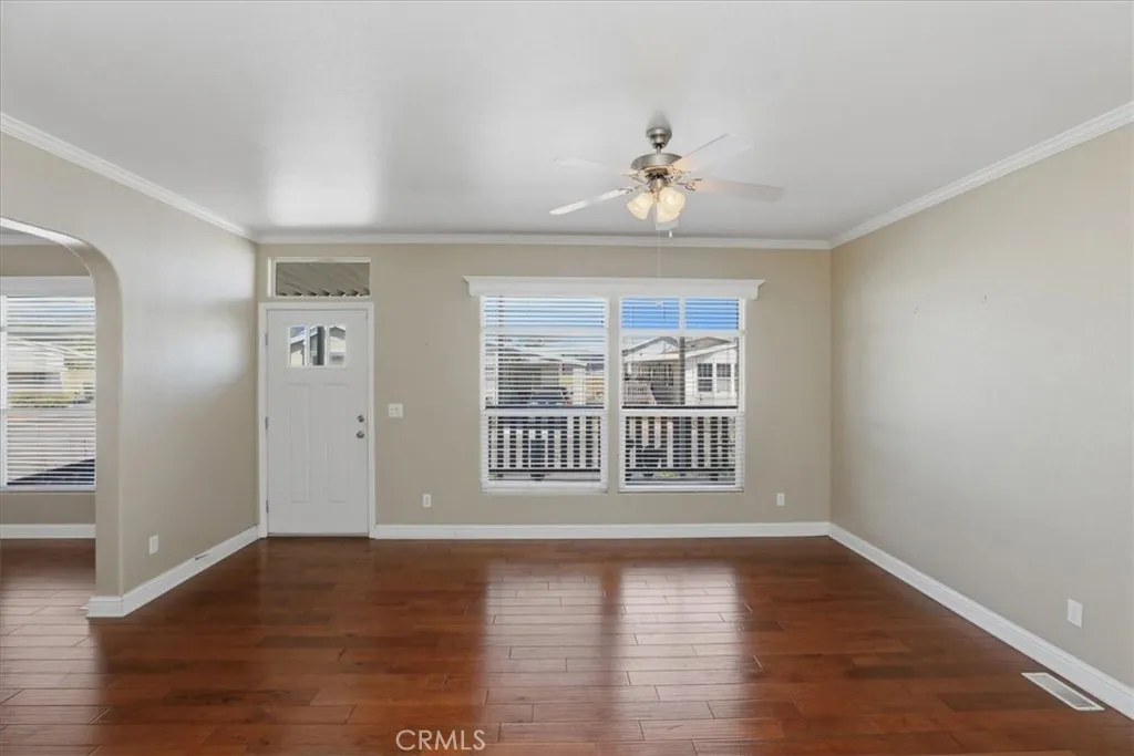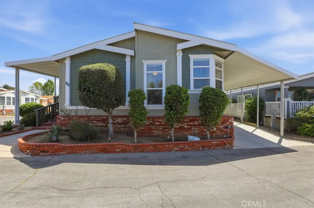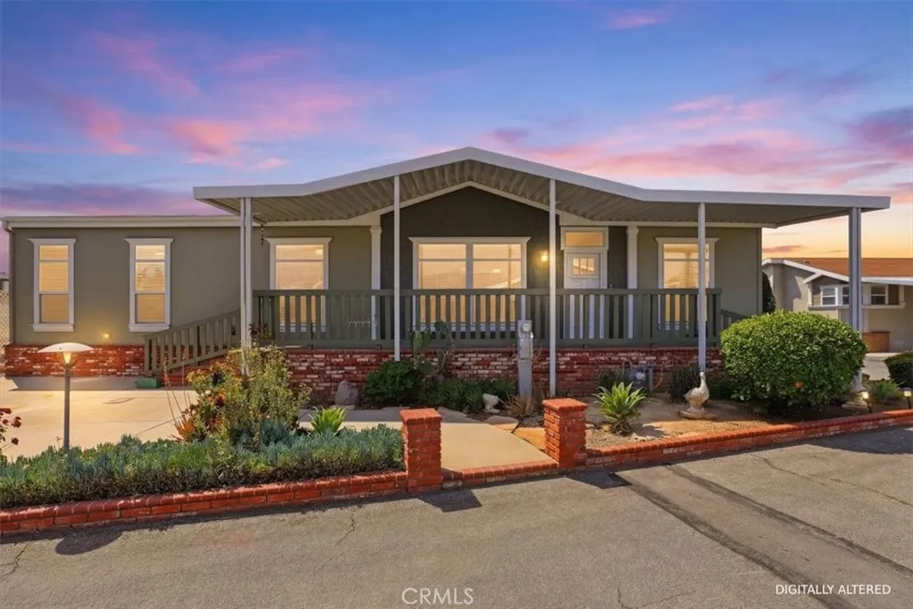 Wow! This wonderful 2013 Fleetwood Modular Home with 1594 square feet has 2 bedrooms and 2 bathrooms PLUS a den/office and is one of the nicest ones I have ever seen! Located in the desirable The Fountains park in La Verne, its a 55 and older park with MANY amenities! Great Mt. Baldy view! This home is on a large corner lot and just recently had the exterior painted. It looks beautiful! Enter the front door to a large living room with REAL wood floors, ceiling fan, crown molding and an alcove for your big screen TV! The gourmet kitchen rivals any in a stick built house! Granite look countertops with tile backsplash, LOTS of cabinets, built in upgraded appliances including gas cooktop, electric oven, microwave, dishwasher AND you get the refrigerator! Plus, recessed lighting, tea lights, pantry, a dining nook, corner sink and a center skylight. The spacious formal dining room also has wood floors and crown molding. The oversized primary suite has a ceiling fan, crown molding, upgraded carpet and a big walk in closet with organizers. The primary bathroom has dual sinks, granite look countertops with tile backsplash, deep soaking tub, 5 walk in shower with upgraded tile and glass doors! The hall bath features a tub/shower combo unit with a single sink vanity. The guest bedroom has a ceiling fan, carpet and lots of closet space. Theres also a den/office with wood floors, ceiling fan and its perfect for any use you like! The indoor laundry room comes with your own washer and gas dryer and lots of cabinet space. The house comes with central air and heat, a tankless water heater,