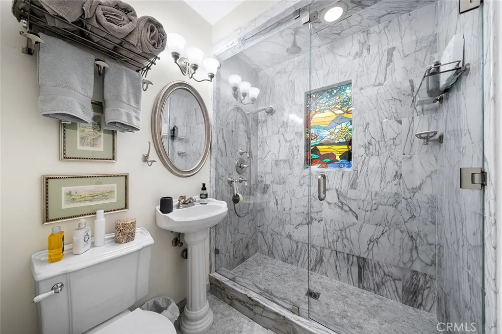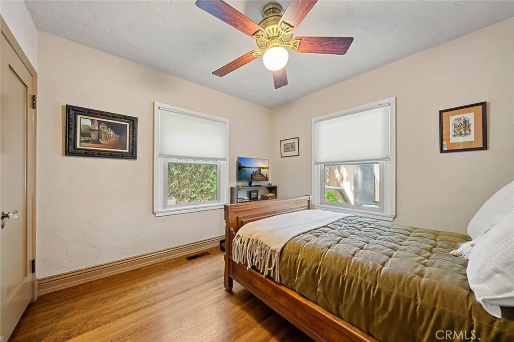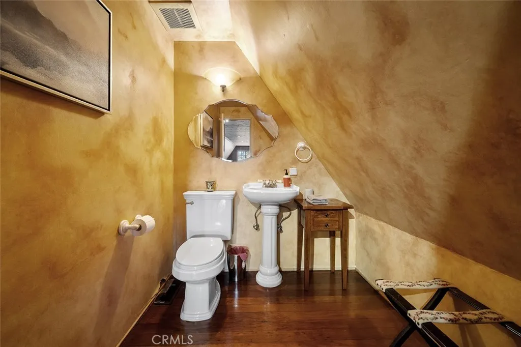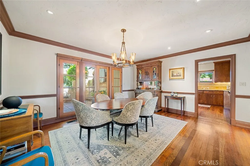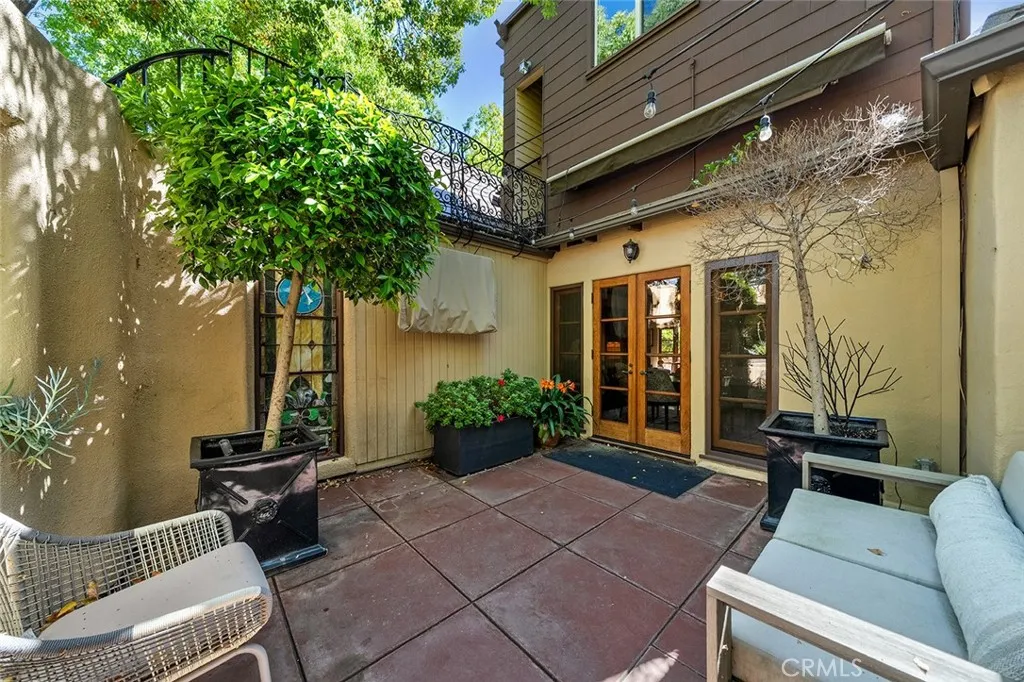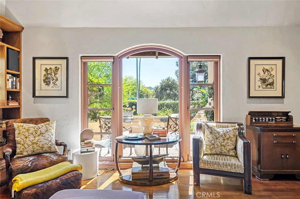 This home is where history, artistry, and everyday living come together in the most inspiring way. This extraordinary 1920s French Tudor residence is more than a home, its a creative sanctuary. Once owned by renowned German violin maker Gustav Fassauer-Ferron, founder of Pasadenas celebrated Arcade Violin Shop, the property carries a legacy of craftsmanship, music, and imagination. From the moment you arrive, illuminated by classic gas lamps, a sense of story and soul unfolds. Up the stairs leads to a formal entry w/ a reimagined entry closet that now serves as an inviting wine cellar; beckons to be enjoyed. The living room inspires with soaring beamed ceilings, abundant natural light from a large picture window, & a seamless connection to a front porch overlooking a lush, private yard framed by tall hedges. A grand Normandy fireplace mantel anchors the space w/ built in speakers. French doors from the formal dining opens to a brick patio for al fresco dining. Note the thoughtfully placed lighting to highlight art and ambiance in the living and dining area while an antique German hutch enriches the dining room w/ a pass through to the warm galley kitchen that includes a wooden rolling table and appliances. Stackable laundry (included) across from breakfast area with an exterior door to the storybook backyard. The primary suite is a work of art, featuring hand-crafted doors from India and pressed metal ceilings from Tennessee. Two additional bedrooms are on the main level, while upstairs a loft with a half bath, potential for expansion, and oversized walk-in closet offers fl