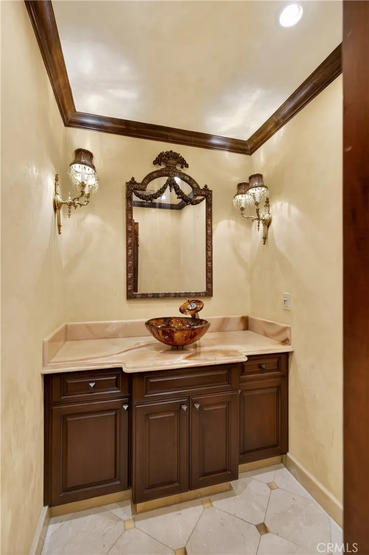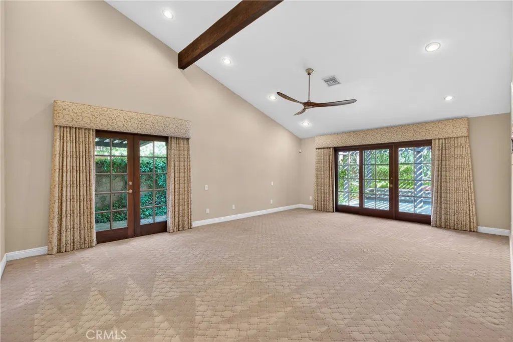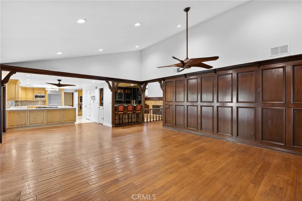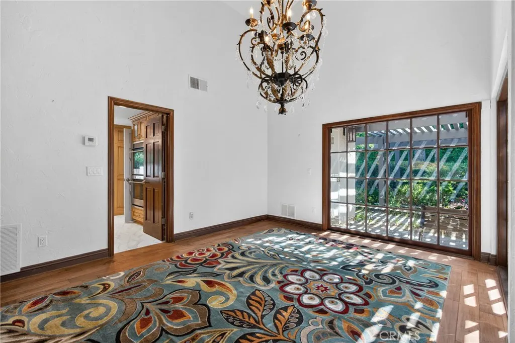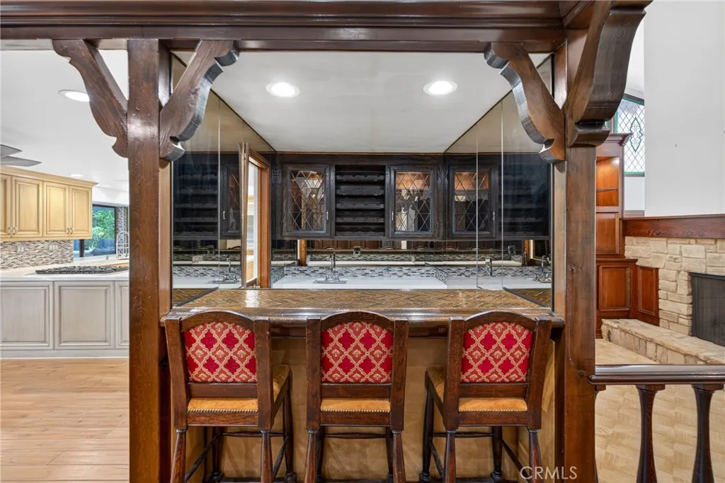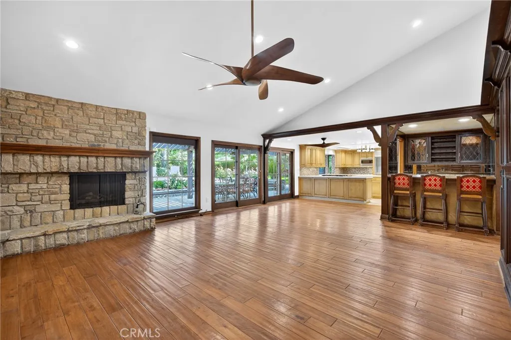 Tucked away on a quiet cul-de-sac in one of Chatsworth's most coveted enclaves, this stunning one-story estate offers the perfect blend of luxury, comfort and versatility - all set against the breathtaking backdrop of the Santa Susana Mountains. Spanning nearly 3,600 square feet on an expansive lot of over half an acre, this exceptional 5-bedroom, 3.5 bath residence welcomes you with soaring ceilings and a thoughtfully designed layout. The formal dining room sets the stage for memorable gatherings, while the dramatic split living room - anchored by a striking two-sided fireplace - creates a warm and inviting ambiance with architectural flair. At the heart of the home, the spacious kitchen is a true showpiece, seamlessly opening to a large den with its own fireplace and adjacent walk-in bar. Designed for both everyday living and entertaining, the kitchen features a central island, butler's pantry, stainless steel appliances, pantry, garden window and an abundance of counters, cabinetry and storage. The primary suite is a private retreat featuring vaulted ceilings, a generous walk-in closet and a spa-inspired en-suite bathroom. Adding to the home's flexibility, one bedroom is ideally situated on the opposite side of the house with its own bathroom and private entrance - perfect for guests, extended family or potential income. Another bedroom has been transformed into a custom closet but can easily be restored to its original use. Step outside into your own private paradise - an entertainer's dream backyard lushly landscaped, featuring a sparkling pool, relaxing spa and a cove