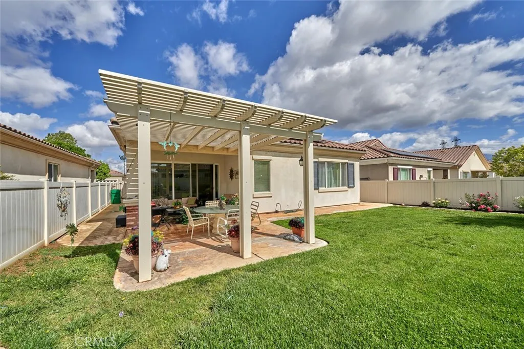 This charming single-story residence presents an exceptional opportunity for an enriched lifestyle within the highly desirable 55+ community of Solera in Beaumont. Perfectly situated on one of Solera's most picturesque streets. The interior features a well-appointed layout, including two comfortable bedrooms, two full bathrooms, and a versatile office/den. Tile and durable laminate flooring extend throughout the main living areas, while the bedrooms provide a cozy retreat with carpeting. At the heart of the home, the kitchen boasts beautifully stained cabinetry, providing ample storage. Step outside to discover a backyard that offers generous space for relaxation, gardening, and entertainment. Internet and basic cable TV are included and paid through the HOA. Home has solar (lease: $166.00 month). Newer air conditioner! Discover the vibrant, resort-style living at Solera. The centerpiece of the community is the clubhouse with a state-of-the -art fitness center, indoor walking tract, tennis and bocce ball courts, a pool and spa, billiards room, library, and versatile meeting/banquet spaces. Residents love the endless social scene: clubs, classes, events, and group activities. Positioned near the I-10, minutes from Cabazon Outlets, Morongo Casino, championship golf and the vibrant energy of Palm Springs. Welcome to the good life!