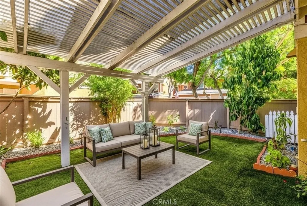 Discover your ideal retreat in the highly sought-after Glenwood Park community, where comfort, style, and convenience come together seamlessly. This beautifully maintained two-story end-unit condo offers exceptional privacy and an abundance of natural light, creating a warm and inviting place to call home. The spacious kitchen is thoughtfully designed with stainless steel appliances, freshly painted cabinetry, and ample prep space, making it both functional and visually appealing. It overlooks a serene backyard setting with numerous fruit trees, offering a peaceful extension of the home that is perfect for relaxing after a long day or hosting casual gatherings with friends and family. The living room is equally impressive, featuring soaring vaulted ceilings, recessed lighting, and a cozy gas fireplace that creates an inviting atmosphere. Sliding glass doors lead directly to the backyard, blending indoor and outdoor living and providing the perfect setting for morning coffee or al fresco dining under the California sky. Upstairs, the primary suite serves as a private sanctuary, highlighted by high ceilings, a ceiling fan, and a spacious layout with tranquil views of the backyard. The ensuite bathroom is well appointed with dual sinks, a walk-in shower, and convenient access to a generous walk-in closet. The secondary bedroom offers flexibility for guests, a home office, or additional living space, while the adjacent bathroom features an expansive vanity and ample storage. Thoughtful upgrades throughout the home include dual-pane windows for enhanced energy efficiency, elegan