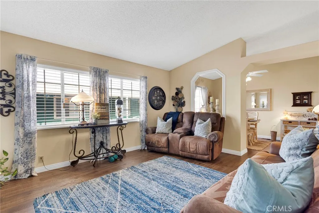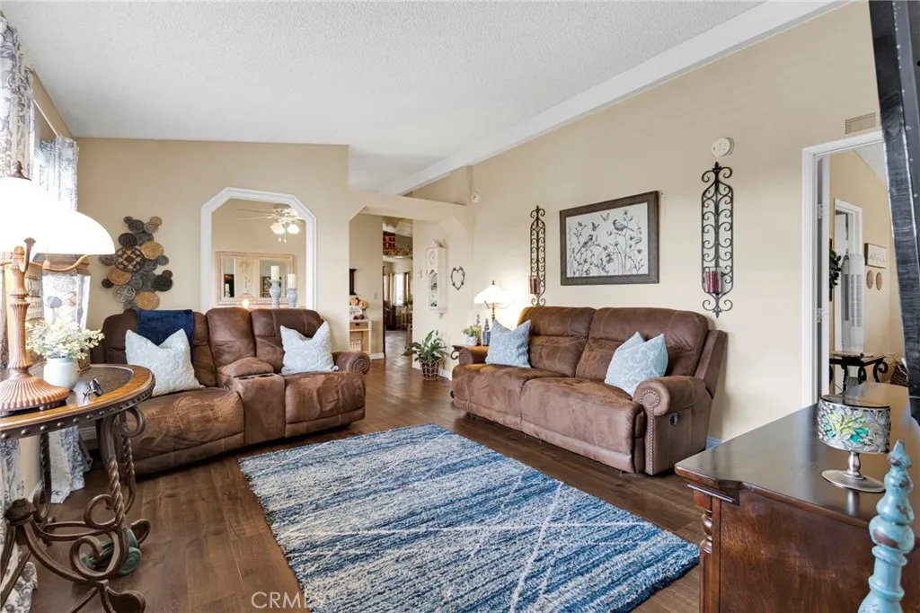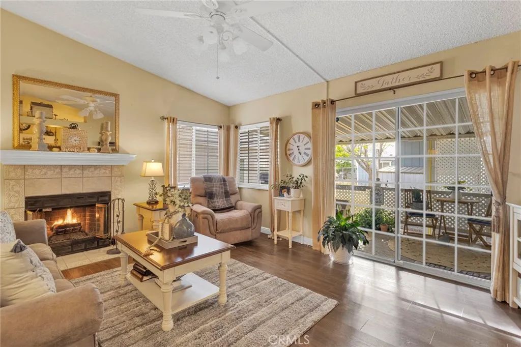 PRICE IMPROVEMENT! Seller is motivated! Lender financing available up to 95%! Welcome to this beautifully maintained Silvercrest Presidential home, offering 3 bedrooms, 2 bathrooms, and approximately 1,650 sq. ft. of spacious, open-concept living. Built in 1989 and measuring 64x26, this home combines comfort, functionality, and thoughtful upgrades throughout. Step inside to find rich wood plank water-resistant vinyl flooring, upgraded baseboards, and tastefully improved finishes that create a warm and modern feel. The upgraded kitchen features stainless steel appliances, an island perfect for entertaining and meal prep, and elegant granite countertops, which are also carried into the bathrooms for a cohesive and stylish design. The primary suite has been refreshed with new carpet and fresh paint, offering a clean and inviting retreat. The open layout provides plenty of room for both everyday living and entertaining. In addition to central air conditioning, the home is equipped with an evaporative cooling system and a cozy fireplace providing efficient and flexible climate control. Accessibility and convenience are key, with an exterior ramp for easy entry, a covered side-entry carport, and direct access into the laundry room/kitchen via steps from the carport. The home also features motion detectors near both the carport and deck for added peace of mind. Enjoy outdoor living with a fully fenced yard, partial landscaping, and a mature shade tree. Step out from the dens sliding glass door onto a spacious deck, complete with steps leading to both the backyard and carportperfec
