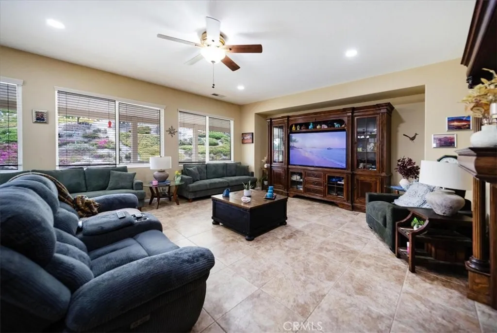 Welcome to Woodmoor Estate! This beautifully maintained pool home has been meticulously cared for and is truly move-in ready. Offering 3 bedrooms, 2 bathrooms, and an oversized 3-car tandem garage, this property combines comfort, style, and functionality. The thoughtfully designed open floor plan features a formal living room and dining room, perfect for both everyday living and entertaining. The spacious, newly remodeled kitchen showcases solid wood cabinetry, quartz countertops, a large island, and a dining area. Just off the kitchen, the inviting family room offers a custom-encased fireplace and plenty of room to gather. The primary suite features backyard views, private access to the backyard, and a large walk-in closet. The beautifully upgraded primary bathroom includes a custom walk-in shower, marble and decorative tile finishes, and dual vanities. Two additional spacious bedrooms and a full secondary bathroom with matching upgrades and dual vanities complete the interior. Additional highlights include laminate flooring, 20x20 tile, neutral custom paint, recessed lighting with dimmer switches, and an oversized laundry room with sink and abundant cabinetry. Step outside to your private backyard retreat, complete with a custom rock pool and spa, concrete hardscape, a full-length patio with Alumawood patio cover, artificial turf, drought-tolerant landscaping, manicured plants, peach, apricot, pomegranate, lemon trees and two stick-built storage work sheds. The property also offers covered RV parking with an extended driveway. Situated on a quiet street with amazing hill
