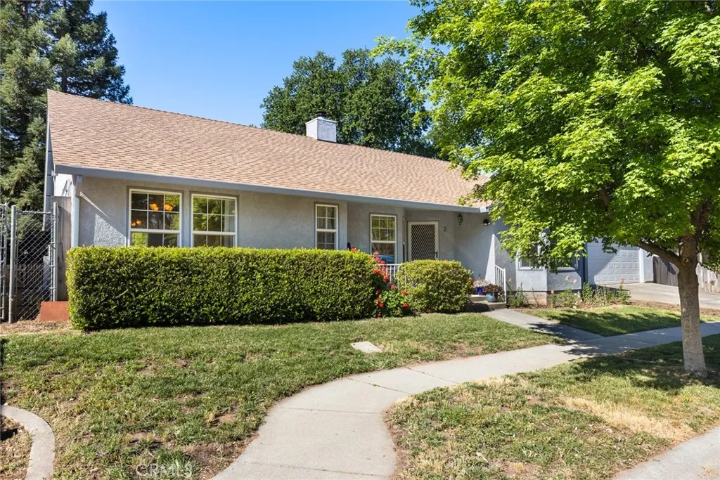 Nested in a desirable cul-de-sac location near the scenic trails and recreation of Bidwell Park, this light-filled home offers the perfect blend of comfort, style, and modern convenience. The open and airy floor plan welcomes you with high ceilings, engineered wood flooring, and a spacious living room highlighted by large windows that invite in abundant natural light. Designed for both everyday living and entertaining, the kitchen opens seamlessly to the dining area and features Corian counters, a breakfast bar, pantry, pots-and-pans drawers, gas appliances and a refrigerator,. The adjoining family room with a cozy fireplace creates a warm gathering space for relaxing evenings. The generously sized primary suite offers a spacious bedroom retreat and a well-appointed bathroom with tile counters, a separate soaking tub, walk-in shower, and dual vanities. Step outside to enjoy the private backyard, where a covered dining patio with skylight provides the perfect setting for outdoor meals and year-round entertaining. Additional highlights include a new roof, indoor laundry with washer and dryer, a water purifier, water softener, Tesla universal charger with two batteries for modern energy efficiency and a leased solar. A two-car garage and potential RV parking along the side yard add extra convenience and flexibility. Ideally located near parks, nature, and amenities, this inviting home combines thoughtful upgrades with a fantastic location.