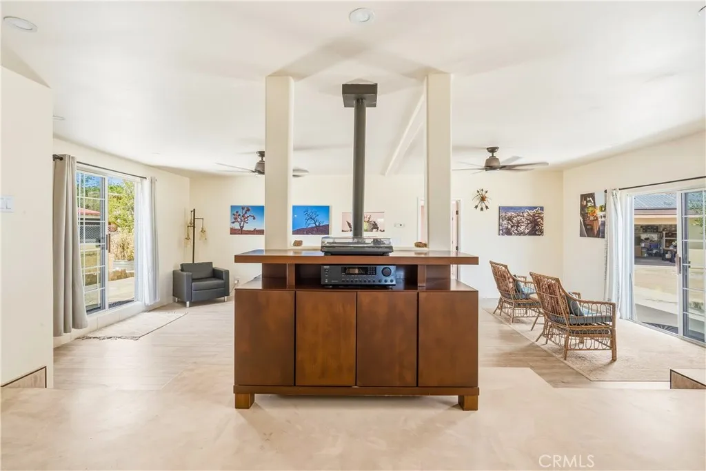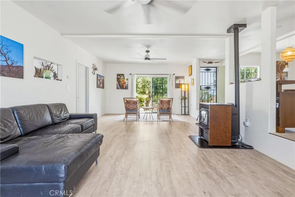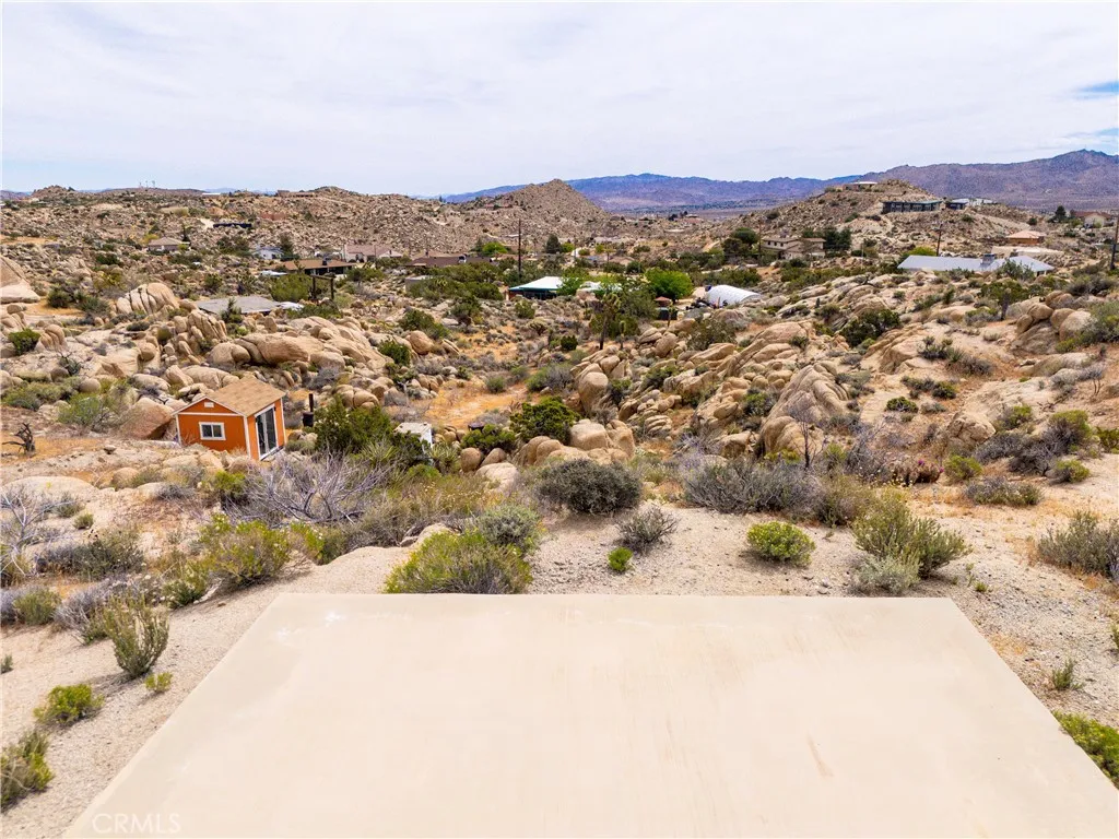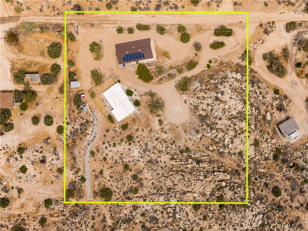 Welcome to your private desert retreat in the desirable Western Hills/Pinion Ridge area of Yucca Valley. This beautifully remodeled 2 bed, 2 bath home sits on 2.5 acres of stunning desert landscape. Offering breathtaking views, natural boulder formations, and plenty of flat usable land making it perfect for enjoying the peaceful desert lifestyle. Step inside to find a thoughtful combination of modern upgrades. Featuring a remodeled kitchen with quartz countertops, soft-close cabinetry, a custom island, and stylish custom overlay flooring. This home also offers durable laminate flooring, creating a clean and modern feel throughout. The primary suite is your personal escape, complete with both a soaking tub and a walk-in shower. As well as a closet for storage with washer dryer hookups available. Additional improvements include a newer silicone roof and a fully paid solar system bringing both efficiency and peace of mind. One of the standout features of this property is the massive 1,800 sq ft detached garage with 10-foot ceilings and smart door openers on both sides ideal for a workshop, car enthusiast, storage, or recreational use. The property also includes a separate structure that offers flexibility for a variety of uses such as an art studio, meditation space, or office just waiting for you to bring your vision. This unique property is surrounded by beautiful native desert vegetation, iconic desert boulders, privacy, and truly unforgettable views. Making it a rare opportunity to own a home in one of Yucca Valleys most sought-after areas. If youve been looking for someth