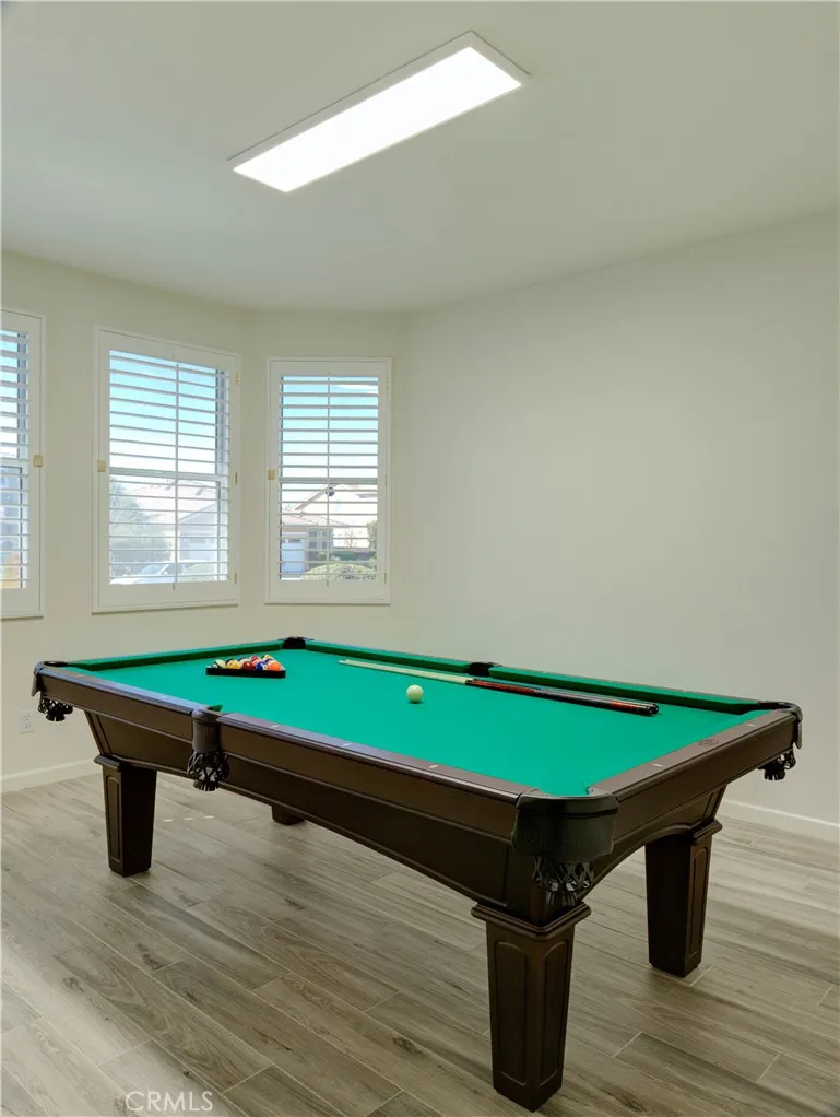 EXCEPTIONAL Single-story home on a Prime Corner Lot. This One is a MUST-SEE! Perfectly positioned just off Clinton Keith Road between the I-15 and I-215. This stunning home delivers the ideal blend of comfort, style and unbeatable convenience, everything is minutes away - Costco, Inland Valley Hospital, restaurants, gyms and everday essentials. Step inside and immediately be impressed by soaring 9-foot ceilings and a warm welcoming atmosphere that flows throughout. An abundance of natural light sets the tone throughout this thoughtfully designed floor plan. The smart split floor plan offers true flexibility - 2 bedrooms and a full bath on one wing; and the master suite with spa-inspired walk-in shower finished in stunning custom wood plank tile, and an additional bedroom and full bath and the laundry room on the other wing. The beautifully upgraded kitchen is the heart of the home, boasting rich granite countertops, sleek Frigidaire appliances, deep under counter sink and a convenient double-door pantry - all anchored by generous cabinetry and a charming built-in desk that makes this space as functional as it is beautiful. Gather around the fireplace in the family room, entertain in the dedicated billiard room, or host special dinners in the dining room area as the entertaining flows seamlessly through the main living spaces. Comfort and efficiency shine throughout with plantation shutters, custom solar screens, whole house quiet-cool attic fan, and ceiling fans. Out back relax under the covered patio surrounded by lush, low-maintenance landscaping in the fully enclosed pri