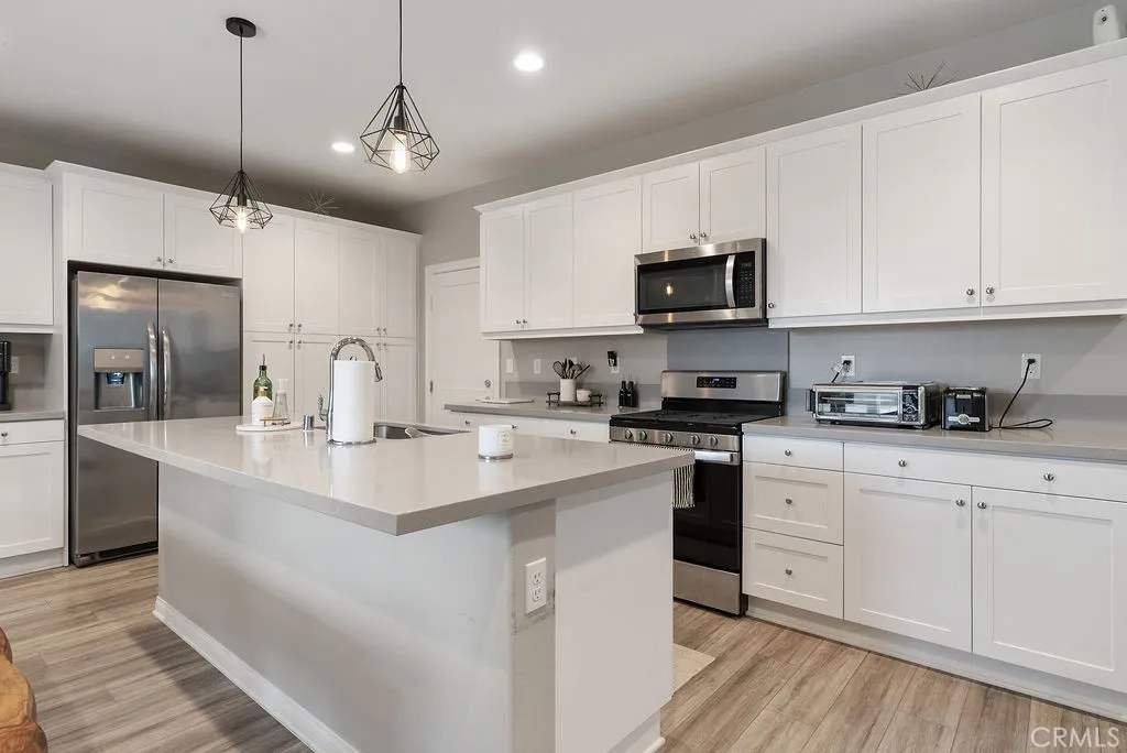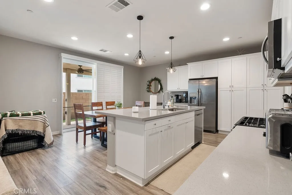 Modern 4-Bedroom Home with PAID-OFF SOLAR in Desirable Ontario Ranch. Welcome to this beautifully maintained single-family home offering the perfect blend of style, comfort, and energy efficiency. Built in 2020, this 4-bedroom, 3-bathroom residence features a thoughtful layout ideal for multi-generational living, with a DOWNSTAIRS FULL BEDROOM & BATHROOM WITH SHOWER. Enjoy an open-concept kitchen designed for entertaining, complete with a spacious island, sleek Quartz countertops, and abundant cabinetry. Durable and stylish viny! flooring flows throughout the first floor, leading to a covered patio-perfect for relaxing or outdoor dining. Upstairs, you'll find a versatile loft area, ideal for a home office, media room, or additional living space. The generously sized primary suite and secondary bedrooms offer ample space for growing families or guests. This home comes equipped with a PAID OFF solar system, providing long-term energy savings, and is located in a well-maintained community with a low HOA. Enjoy access to top-tier amenities, including a resort-style pool and a family-friendly playground. Additional highlights include a widened driveway and a whole-home water softener system, enhancing everyday comfort and convenience. Don't miss this opportunity to own a modern, move-in-ready home in one of Ontario Ranch's most sought-after neighborhoods!