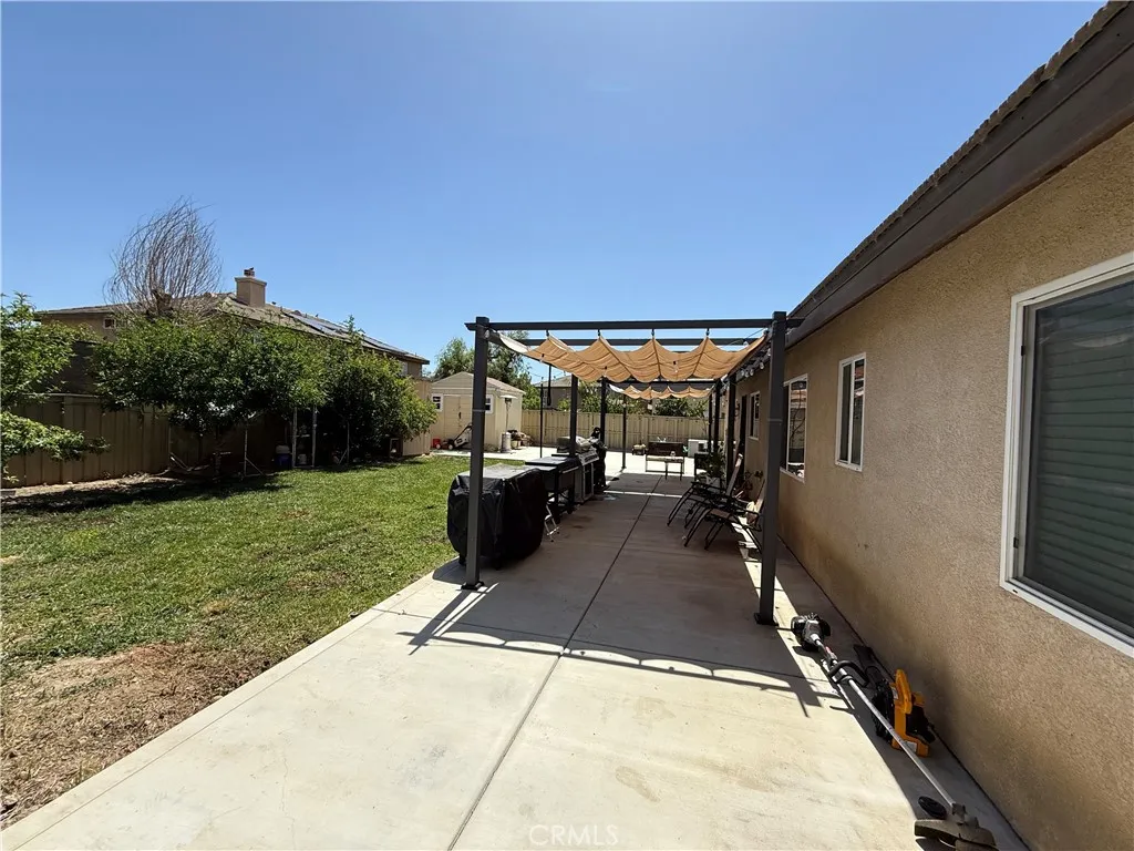 Don't wait! This single story beauty in a convenient San Jacinto neighborhood offers an efficient layout with no wasted space, including a dining room/formal living room which opens to the family room/kitchen, an office/den and 3 spacious bedrooms, including a primary bedroom with en suite and a walk in closet. Upon entering, you're greeted with ample natural light (for those plant enthusiasts), vaulted ceilings, and a design that is conducive to entertaining. Tasteful laminate flooring runs seamlessly through the living areas, while a hand crafted wood countertop on the kitchen island will be the center of conversation both literally and figuratively. For those who work at home, the office space (currently used as a bedroom) is positioned at the front of the home, making working while maintaining home responsibilities easier. Meanwhile, the spacious backyard boasts a patio that runs the length of the home, with the added convenience of a retractable patio cover. Generous side yards allow for a garden, working/storage space, and the run of your imagination, while a shed and chicken coop lend to your homesteading dreams. This home holds the possibility of extended family/friend filled gatherings, a first home that becomes the forever home, and so much more! Don't hesitate to make it yours!