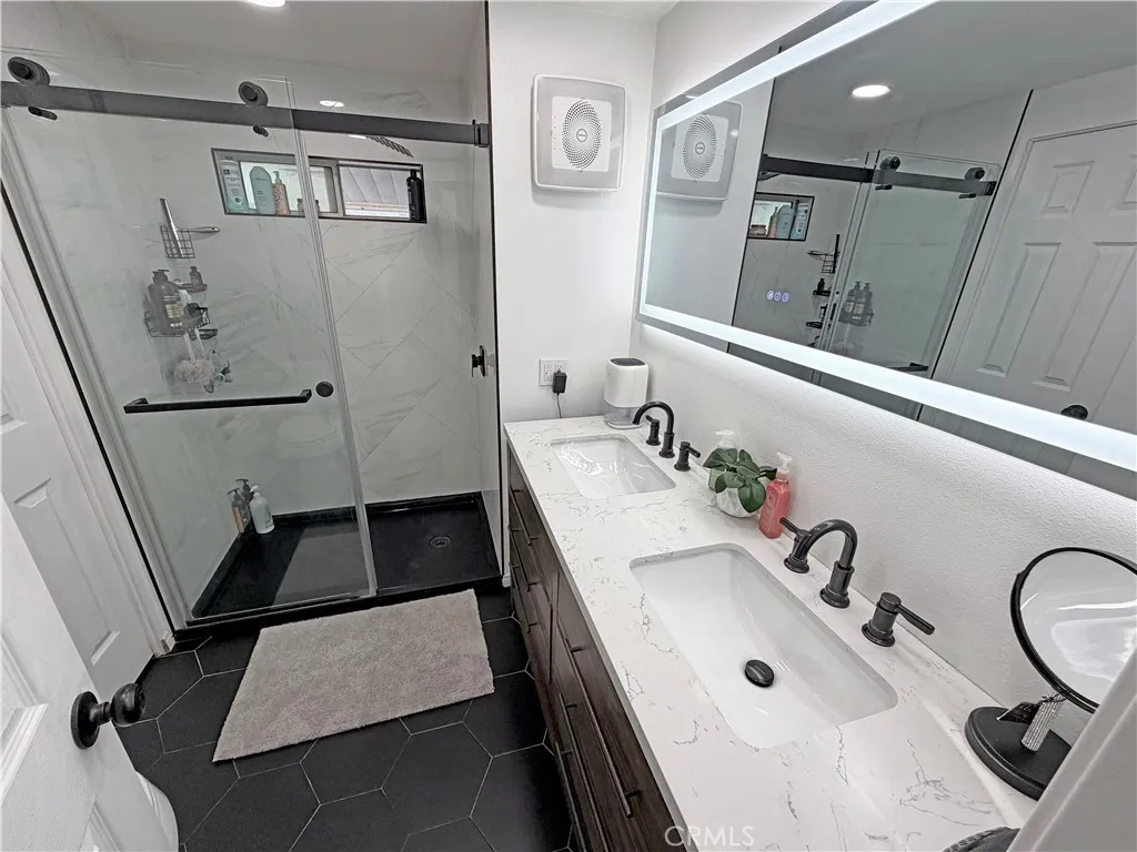 Beautifully remodeled mobile home located in the desirable Lone Hill Manor community in San Dimas. This thoughtfully updated home features 1 spacious bedroom, 1 full bathroom, and 2 versatile bonus rooms (Currently setup as bedrooms) perfect for a home office, guest space, or hobby area. The interior showcases a modern, sleek design with clean lines and updated finishes. The upgraded kitchen complete with granite counters, stainless steel appliances opens into the dining area with large built in storage. The open living area creates a functional and inviting space. Recent renovations include full bathroom remodel, flooring, painting, kitchen counters and appliances, inside laundry hookups. The exterior of the home includes a entertainers patio, artificial turf, gym area, covered carport parking along with two storage sheds. Located in a wonderful family park known as Lone Hill Manor which offers a pool, spa, billiard room, community center, BBQ and picnic area, sport court and is all close to shopping, dining, and schools. This move-in ready home truly has it all. Conveniently located near shopping, dining, and freeway access.