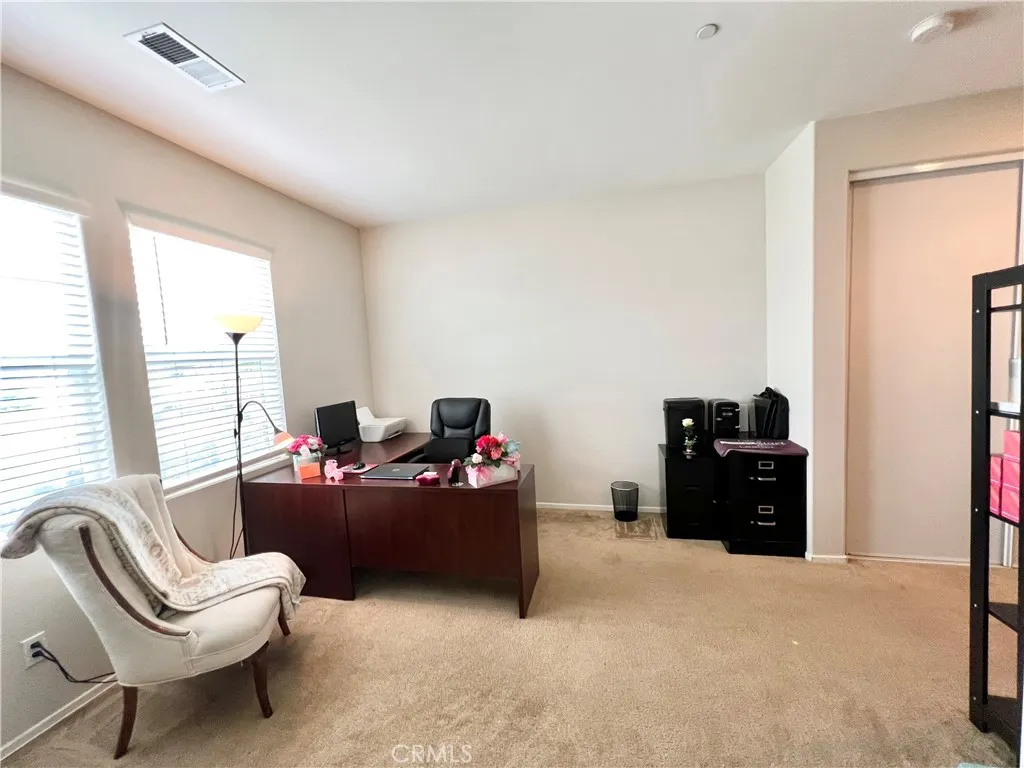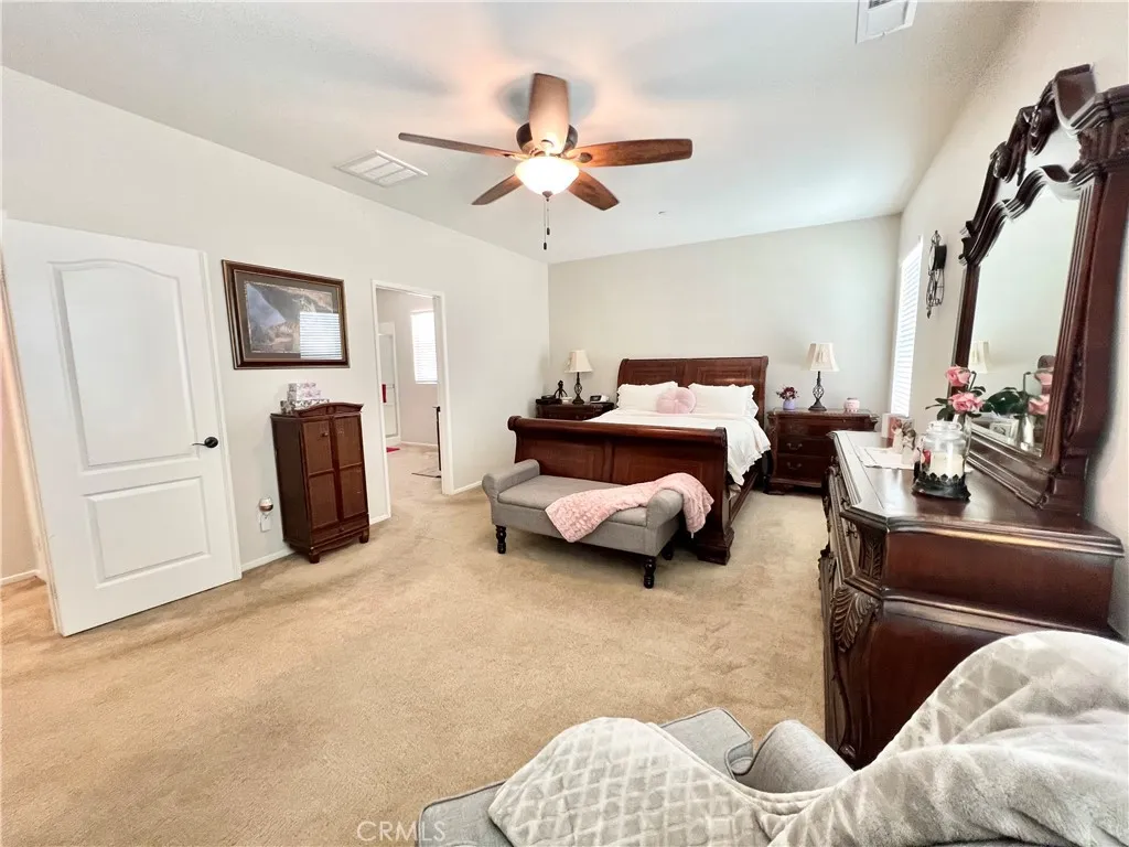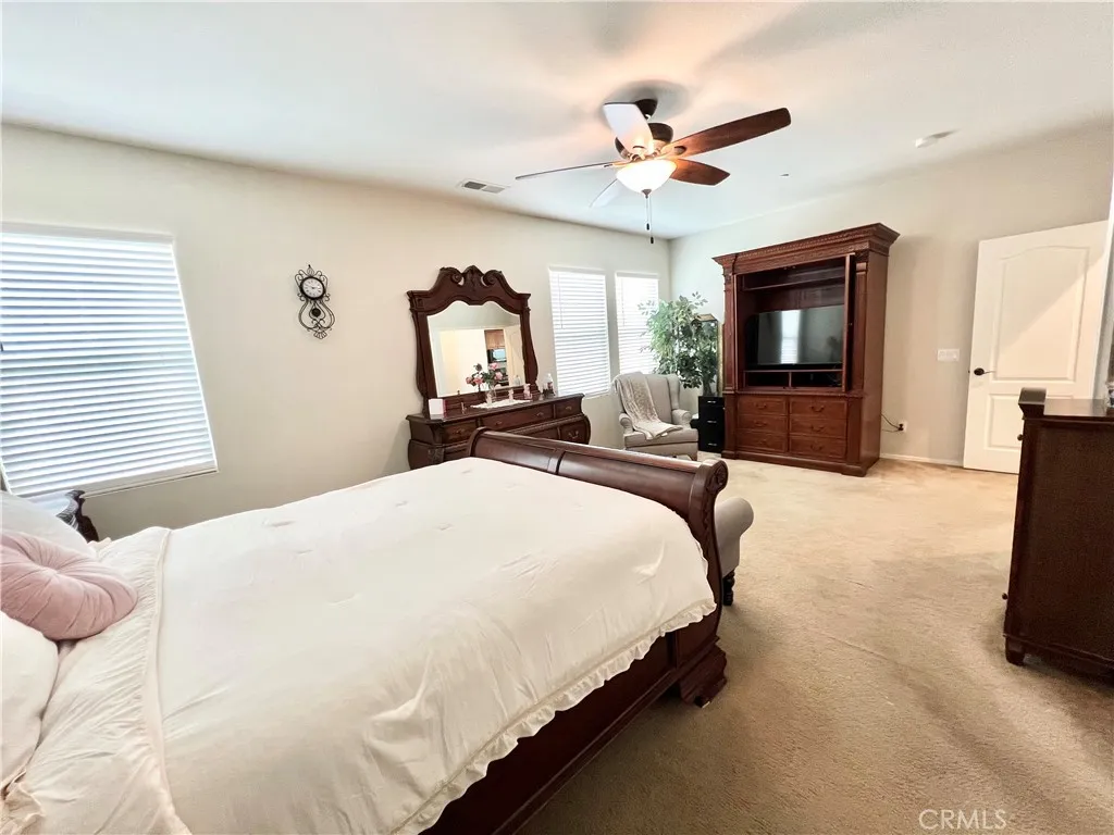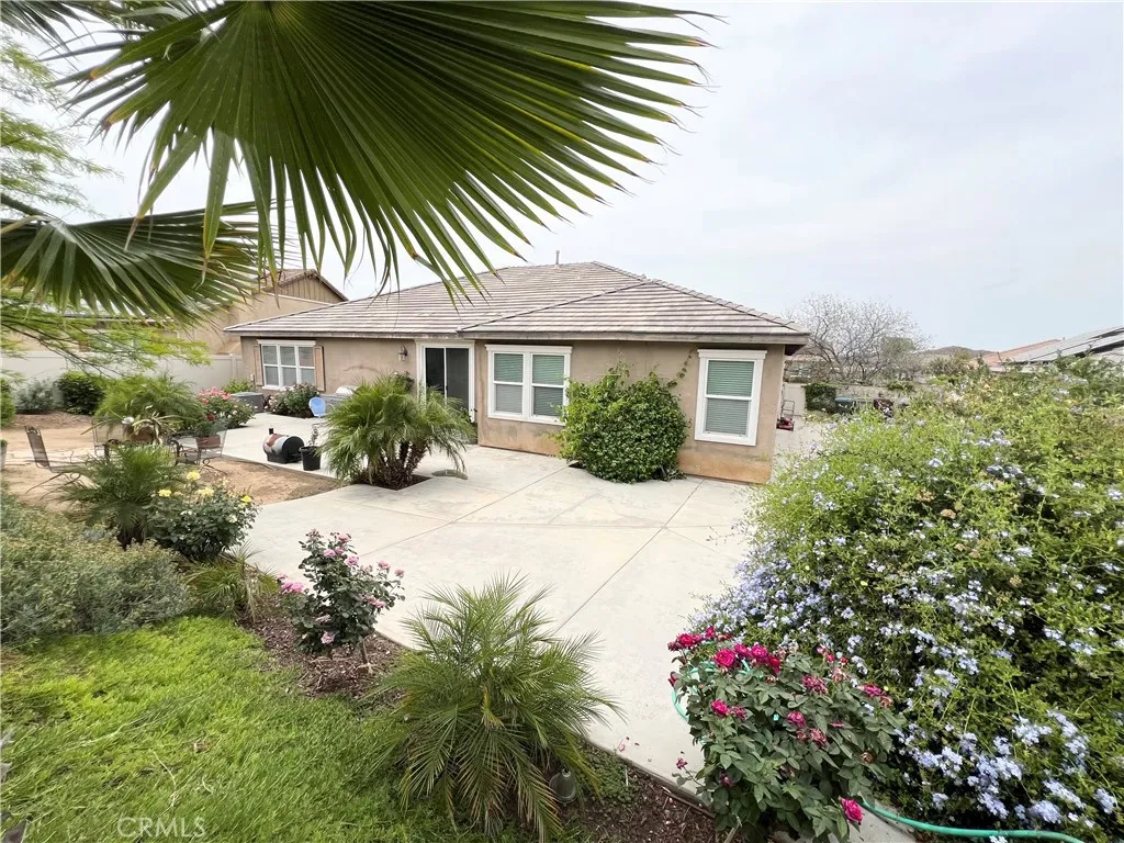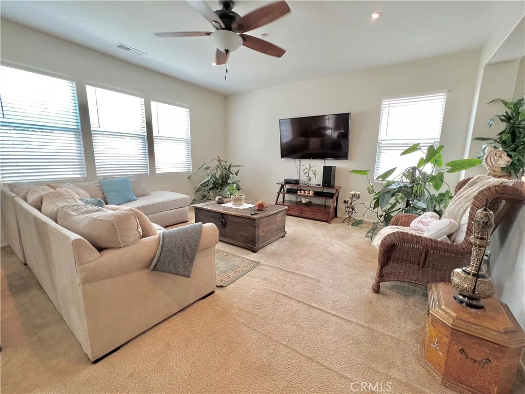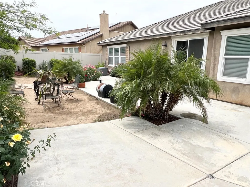 PAID-OFF SOLAR and RV PARKING! Welcome to this beautifully maintained Menifee home offering space, functionality, and an ideal location with very low HOA. Tucked away from busy main roads yet conveniently close to schools and parks, this property offers the perfect balance of privacy and accessibility. From the moment you arrive, youll appreciate the expansive driveway and impressive tandem garageapproximately 33 feet longdesigned to accommodate up to four midsize vehicles with ease. RV access and parking add even more flexibility for your lifestyle and storage needs. Inside, the home features 9 ft ceilings that enhance the open and airy feel throughout, along with 4 spacious bedrooms and 5 bathrooms thoughtfully designed for comfort and convenience. The primary suite serves as a relaxing retreat, complete with dual sinks, a separate shower, and a soaking tub. The hallway bathroom is a full bath with dual sinks and a shower/tub combination, while a convenient bathroom at the front of the home includes a stand-up shower, sink, and toiletperfect for guests. The interior showcases a blend of carpet and vinyl flooring throughout, creating a warm and practical living environment. Pride of ownership shines through as the seller is the original and only owner who has meticulously cared for the property. This is a rare opportunity to own a solar-powered, move-in ready home with generous parking, space, and a desirable Menifee location.