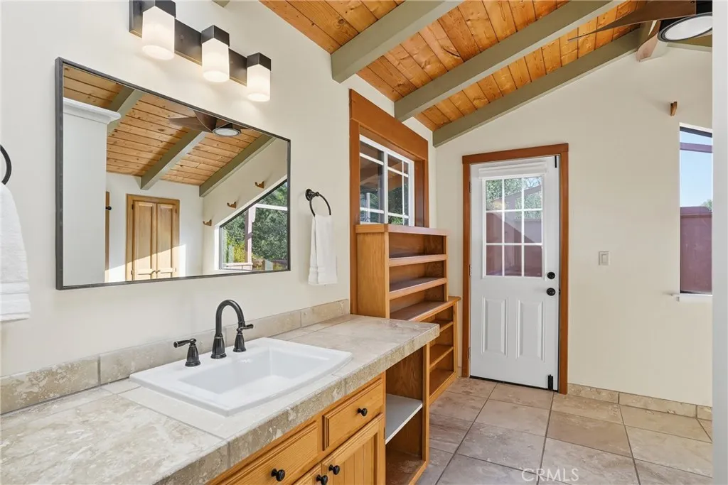 Set within a cul-de-sac and tucked behind mature oak trees, 1251 Mesa Oaks Lane is a California Spanish-inspired estate offering space, character, and architectural presence. Vaulted ceilings, rich wood detailing, and expansive picture windows frame the interior, filling the home with natural light and creates an immediate sense of warmth and scale. The main living and dining areas are anchored by a sunken living room with fireplace and timeless Saltillo tile flooring. The kitchen features abundant custom cabinetry, an adjacent breakfast or sitting room, and access to a sunny, enclosed patio. Each bedroom in the home features an en-suite bathroom. The primary suite is complete with a private patio, walk-in closet with built-ins, and an additional area ideal for an office, nursery, fitness space, or meditation room. The spa-inspired primary bath includes a soaking tub, zero-threshold shower, radiant heated floors, and custom cabinetry. Open-riser stairs lead to a loft perfect for additional living space, an art studio, library, or workspace and a dramatic upstairs bedroom. This bedroom enjoys its own private deck and entrance, further enhancing the home's flexible layout. Recent improvements include a 50-year roof underlayment (approximately nine years old), newer windows, skylights, doors, and custom cabinetry. A large outbuilding, detached workshop with a variety of potential uses, and an attached oversized two-car garage give plenty of options for storage and projects. Outdoors, the property offers ample room to entertain, garden, or simply enjoy the lush natural surround