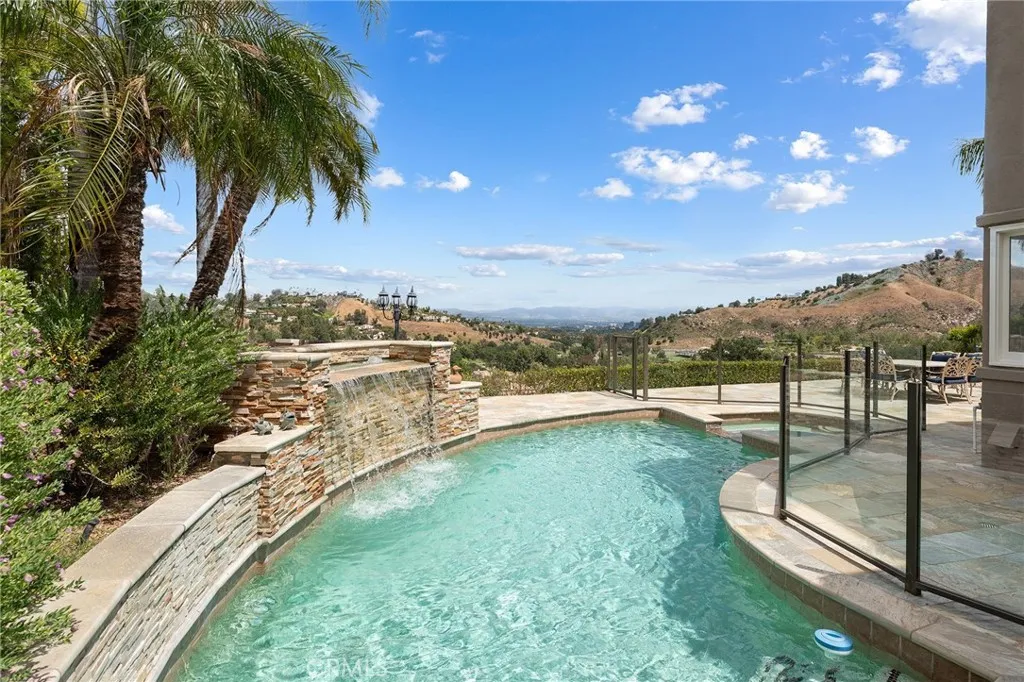 Perched to capture truly breathtaking, unobstructed panoramic views of the San Fernando Valley, this guard-gated Mediterranean estate offers a rare opportunity to experience elevated Calabasas living at its finest. Tucked away on a flat cul-de-sac in one of the areas most coveted communities, nearly every space in the home is designed to showcase its incredible vantage point. Inside, the home features 5 spacious bedrooms and 4 baths, with a bright, open floor plan enhanced by soaring ceilings and walls of windows that frame the stunning vistas beyond. The formal living and dining rooms provide an elegant setting for entertaining, while the chefs kitchencomplete with premium appliancesflows seamlessly into a warm family room, all oriented to maximize the spectacular views and indoor-outdoor connection. Upstairs, the expansive primary suite serves as a private retreat, featuring a cozy fireplace, spa-like ensuite, generous closet space, and sweeping views that create a serene, resort-like atmosphere. Additional bedrooms are thoughtfully positioned to offer comfort and privacy. This home also comes with a newer roof installed approximately 2 years ago. Step outside to a backyard that truly steals the showan entertainers dream set against a dramatic panoramic backdrop. Enjoy a gated pool and spa, built-in BBQ, open patio, and lush landscaping, all perfectly positioned to take in unforgettable sunsets and sparkling city lights. With a three-car garage, dual Tesla charging stations, and access to top-rated schools, premier shopping, and all that Calabasas has to offer, this home