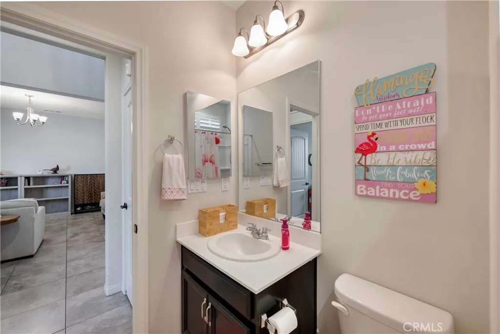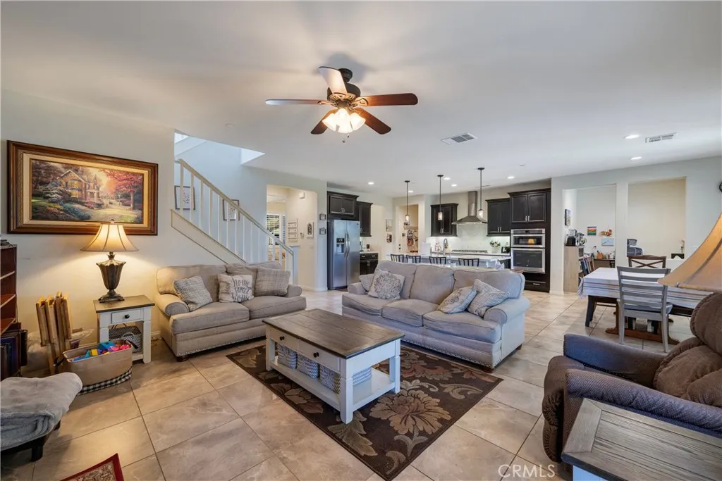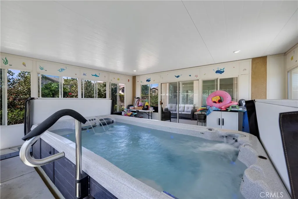 Welcome to this spacious 6 bedroom, 5 bathroom home located in highly desirable community of Serrano Ranch in Jurupa Valley. Two bedrooms conveniently located downstairs, including one with a private en-suite Full bathroom downstairsperfect for guests Open loft area upstairs Tile flooring throughout the first floor; two bedrooms feature laminate flooring Modern kitchen with quartz countertops, large island, full backsplash, and dual ovens Dual laundry areas: upstairs laundry room plus garage hookups with utility sink Walk-in pantry for ample storage Energy-efficient tankless water heater Aquasana whole-house water filtration system with two reverse osmosis taps Enclosed pool room featuring a 14-foot swim spa Beautifully landscaped backyard with extended patio and storage shed Owned solar panel system Neighborhood park within close proximity