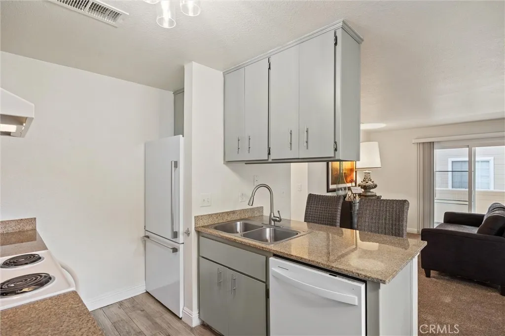 Welcome to your slice of perfectiona rarely available, move-in ready, ground-floor condo offering 3 spacious bedrooms and 2 full bathrooms, all without a single step to climb. Tucked away in the serene and quiet Sunridge gated community, this is the ideal sanctuary for anyone seeking convenience and comfort. Step inside to a home that feels new. You'll immediately notice this unit is perfectly positioned to be shaded in the summer, beautiful fresh paint, and brand new carpet throughout. The open-concept kitchen is a features granite countertops, a stylish tile backsplash, and newer fridge, & dishwasher. Inside laundry enhances the ease of living. The bedrooms are generously sized, with the master suite serving as a private retreat, peacefully situated at the end of the hallway. Both full bathrooms have been updated with contemporary lighting and have granite vanity tops. The master bathroom boasts a walk-in shower, while the guest bath provides a convenient tub/shower combination. Notice that most of the rooms have a ceiling fan that is newer. You have a small private patio that includes a storage closet. Location is everything, and this condo is prime. It is close to the sparkling pool and spa, making it feel like your own private backyard oasis. Plus, enjoy the ultimate peace of mind knowing the dedicated HOA takes care of everything, from yard maintenance and pool upkeep to building maintenance (they recently painted the buildings and replaced the parking lot). Everything moves like clockwork. Even trash and recycling are collected a few times a week for effortless livin