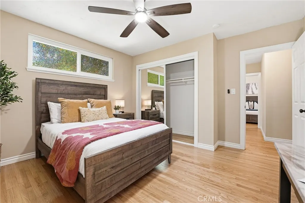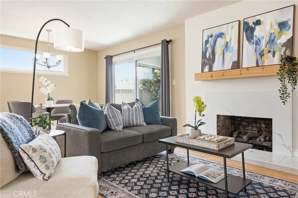 Beautifully upgraded single-story home located on a charming tree-lined street in Fullerton. This turnkey property offers excellent curb appeal with exterior paint, lush landscaping, and mature fruit trees.The bright open-concept layout features hardwood flooring throughout, 5-inch baseboards, vinyl windows and sliding doors, recessed lighting, contemporary fixtures, ceiling fans, and central air conditioning. The stunning kitchen showcases white cabinetry, quartz countertops, a glass tile backsplash, and stainless steel appliancesperfect for both everyday living and entertaining. The spacious living and dining areas are filled with natural light, highlighted by a beautiful quartz-surround fireplace that serves as the focal point of the home. All three bedrooms are generously sized with mirrored closet doors, including an expansive primary suite (approx. 20 x 12) with dual closets and a private retreat area. Both bathrooms have been tastefully upgraded with custom tile, frameless glass shower enclosures, and modern vanities and finishes.Enjoy the California indoor-outdoor lifestyle in the private backyard featuring a covered patio, custom flagstone hardscape. Located within the highly regarded Fullerton Joint Union High School District, with convenient access to the 91 and 5 freeways and just minutes from Downtown Fullertons shopping, dining, and transportation.