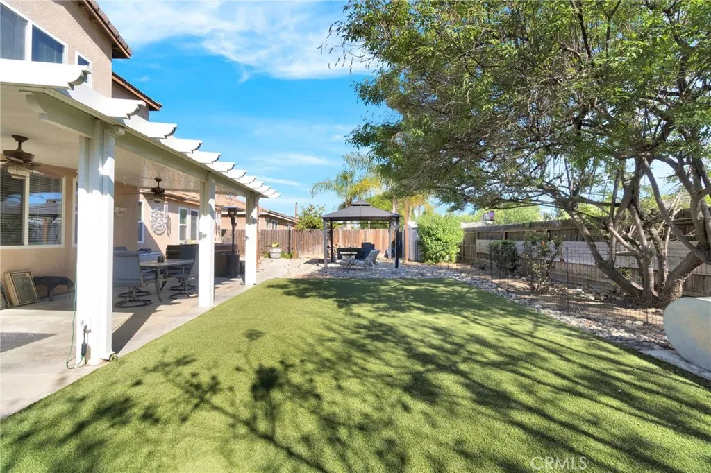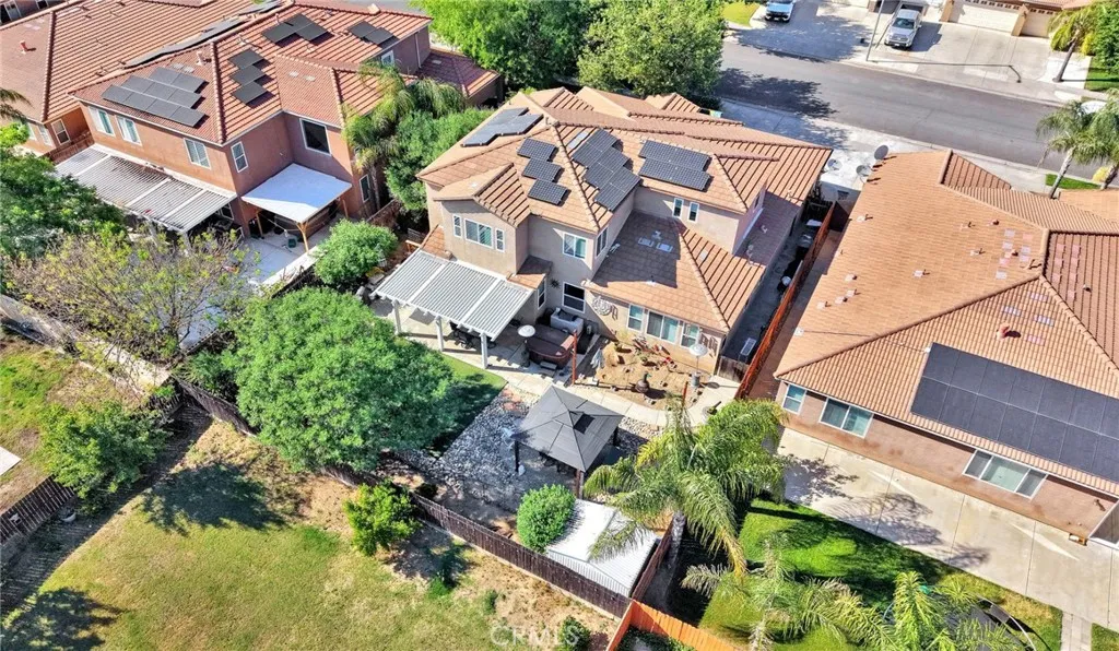 Welcome to this exceptional newer home in the heart of Fresno where modern upgrades, thoughtful design, and resort-style outdoor living come together seamlessly, all within the highly desirable Clovis Unified School District. From the moment you step inside, you'll be impressed by the beautiful, newer rich flooring that flows throughout the home, creating a warm and inviting atmosphere. The well-designed layout offers both functionality and comfort, featuring a spacious primary suite on the ground floor for added privacy and convenience, along with a dedicated office perfect for working from home or a quiet retreat. Upstairs, in addition to 3 more bedrooms and a bathroom, a generous 16' x 14' living room/den/loft provides versatile space that can easily function as a media room, game room, or additional lounge area to fit your lifestyle. Step outside and discover your own private backyard oasis. The permitted patio with a relaxing jacuzzi sets the stage for year-round enjoyment, whether you're entertaining guests or unwinding after a long day. The beautifully maintained garden alongside the home adds charm and tranquility, while mature shade trees create a peaceful, cool, park-like setting. Enjoy fresh fruit from your very own orange and fig trees, and appreciate the low-maintenance synthetic lawn that keeps the yard looking pristine. Additional outdoor features include added concrete work for custom usability, a charming gazebo for shaded gatherings, and a tool shed situated on a cement pad for extra storage and convenience. This home also features OWNED solar, offering si