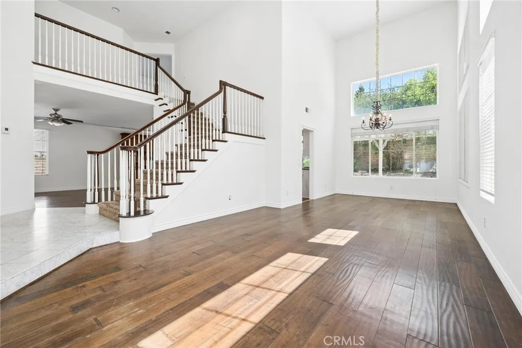 Perfect location for the Northbridge Valencia 5 bedroom pool home on a rare cul-de-sac! Open floorplan with soaring ceilings upon entry and huge super family room. The 4-car garage option from the builder was not taken - instead there is a 5th room (office/no closet) and full bath downstairs. Upstairs there are 4 good-sized bedrooms, one of which is oversized. The primary also has double walk-in closets. Fresh paint throughout and nice improvements include wood floors, wainscot/crown molding, granite counters/island in kitchen, stainless appliances, walk-in pantry and distressed cabinets. Nice yard with large, covered patio plus pool/spa and BBQ. Mature trees create privacy and the location cant be beat! Close to parks, pools, the clubhouse and award winning Helmers Elementary (2023 Distinguished School Award) all for one low HOA and no Mello Roos taxes. This is what makes Northbridge so popular - centrally located and with amazing amenities at a low cost. Come home to Valencia!