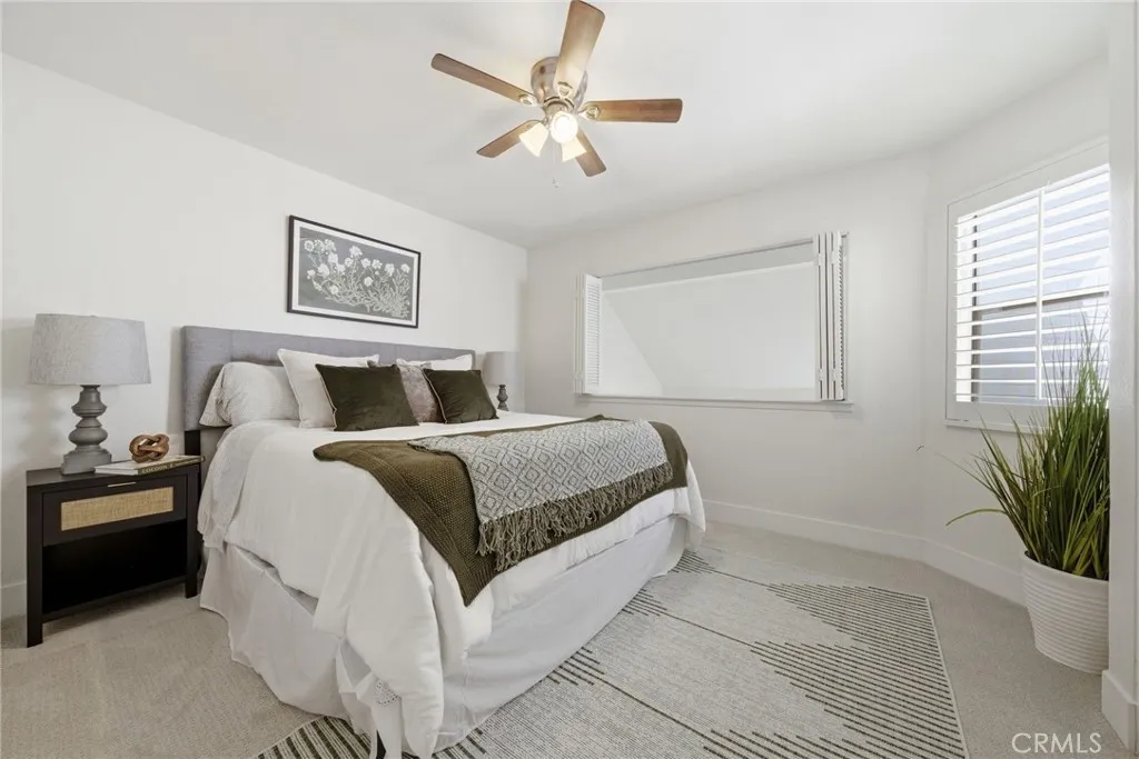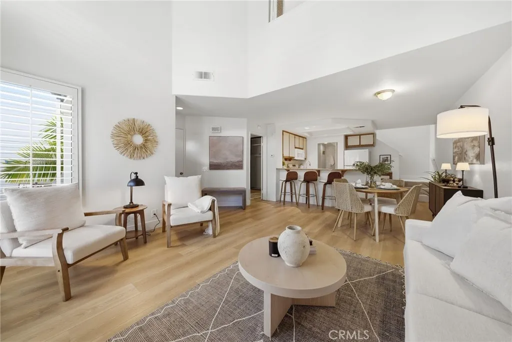 Welcome to 3 Greenmoor, a charming townhome located in the highly desirable Woodbridge community of Irvine. From the moment you enter, youre greeted by soaring two-story ceilings and an abundance of natural light that fills the living space, creating an open and inviting atmosphere. The living room features a cozy fireplace and is complemented by shutters on the windows and sliding doors, adding both style and privacy. The main level offers brand new luxury vinyl plank flooring and includes a spacious bedroom with an attached bathroom, complete with a tub and shower combination. This room also features a ceiling fan and generous space, making it a comfortable retreat. The kitchen opens to the living area and includes a breakfast bar, along with a dishwasher, range, and refrigerator. Just off the kitchen is a separate walk-in laundry room for added convenience. There is also space for a dining area, making the layout both functional and flexible. Upstairs, youll find brand new carpet and a second large bedroom with its own bathroom, also featuring a tub and shower combination, offering privacy and comfort. Step outside to a private enclosed patio, ideal for outdoor dining, relaxing, or enjoying the Southern California weather. The home also includes a one-car detached garage. Located within the Woodbridge community, residents enjoy access to a wide range of amenities, including lakes, pools, parks, and more. This home is also situated within the attendance boundaries of Springbrook Elementary, South Lake Middle School, and Woodbridge High School. A wonderful opportunity to o