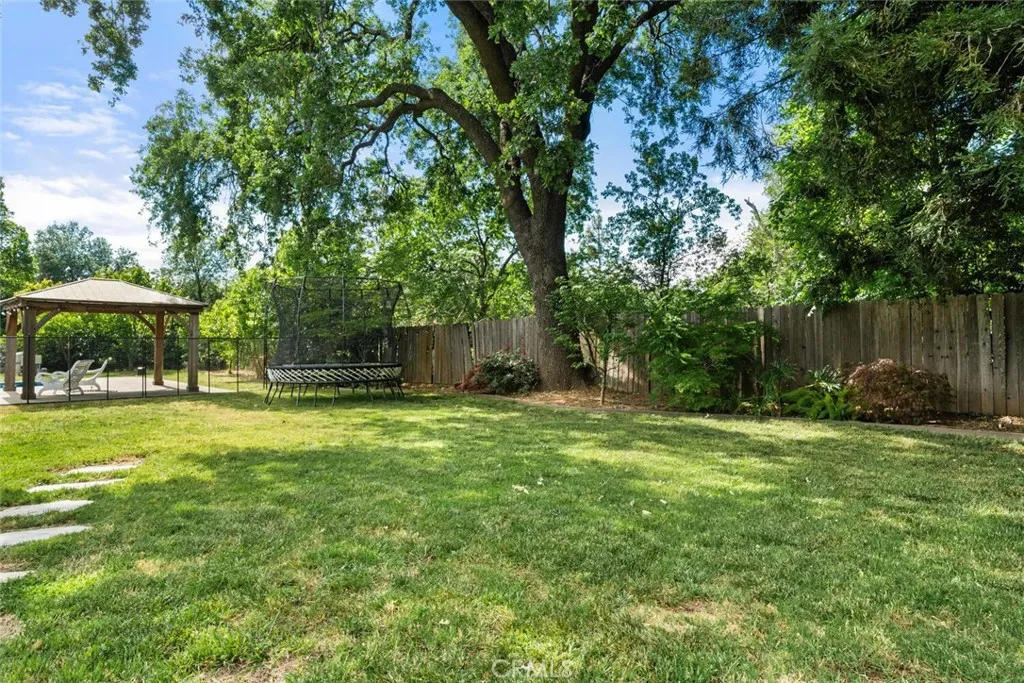 OWNED SOLAR, SPARKLING POOL on HALF ACRE LOT!! All bedrooms downstairs, plus an office and HUGE bonus room! This gorgeous property offers the perfect blend of comfort, space, and outdoor living. Fresh new paint, carpet, and updated fixtures throughout give the home a bright, refreshed feel. The inviting sunken living room features a brick-surround wood-burning fireplace, recessed lighting, and a warm, welcoming atmosphere. Just off the living room, a private office with double French doors creates an ideal work-from-home space. Upstairs, the enormous bonus room boasts new LVP flooring, tall ceilings, abundant natural light, and a built-in entertainment centerperfect for a game room, media space, or additional living area. The kitchen offers farm-style white cabinetry, stone counters, tile flooring, a double oven, and a beautiful tile backsplash. All bedrooms are conveniently located downstairs in a functional split floor plan, with the spacious primary suite privately positioned at the back of the home. The primary bedroom features French doors to the backyard, a large closet, and an ensuite bath with dual sinks and a tub/shower combo. Step outside to your own backyard retreat featuring a sparkling gated pool, gazebo, expansive lawn, and large fire pitperfect for hot summer days by the pool and cozy evenings gathered around the fire. At the back of the property, enjoy a private fruit orchard with avocado, apple, mandarin, and lemon trees. This spacious half-acre property offers the perfect blend of indoor comfort and outdoor living.