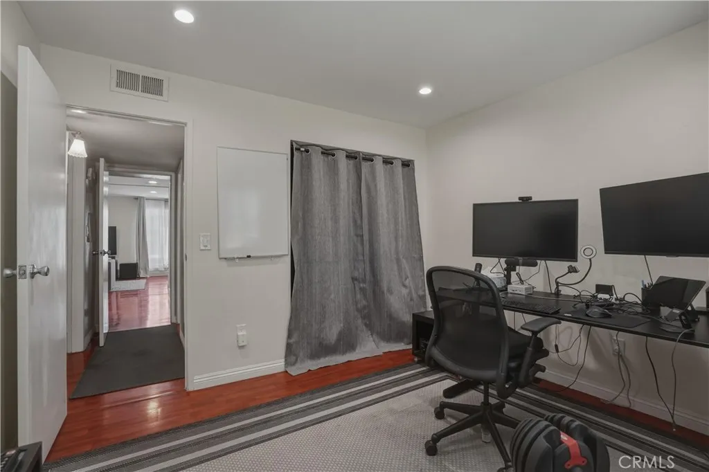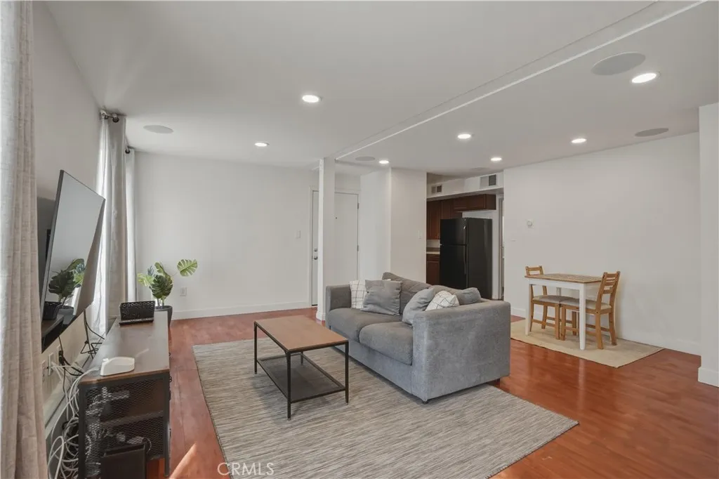 Beautiful 2-bedroom, 2-bath condo located in a gated community. This light-filled first-floor end unit offers an open floor plan with newer windows (2022), recessed lighting, built-in living room speakers, and laminate flooring throughout. The kitchen is equipped with a dishwasher and built-in microwave, making it both functional and convenient. The primary suite features two closets, an en-suite bathroom, and a private balcony overlooking the pool. Additional highlights include secured building access, two covered tandem parking spaces behind a security gate, community laundry, and a beautifully maintained complex with a sparkling pool. Only 28 units in the community and conveniently located near shopping, dining, parks, and schools, this move-in ready condo offers an exceptional opportunity in a highly desirable location.