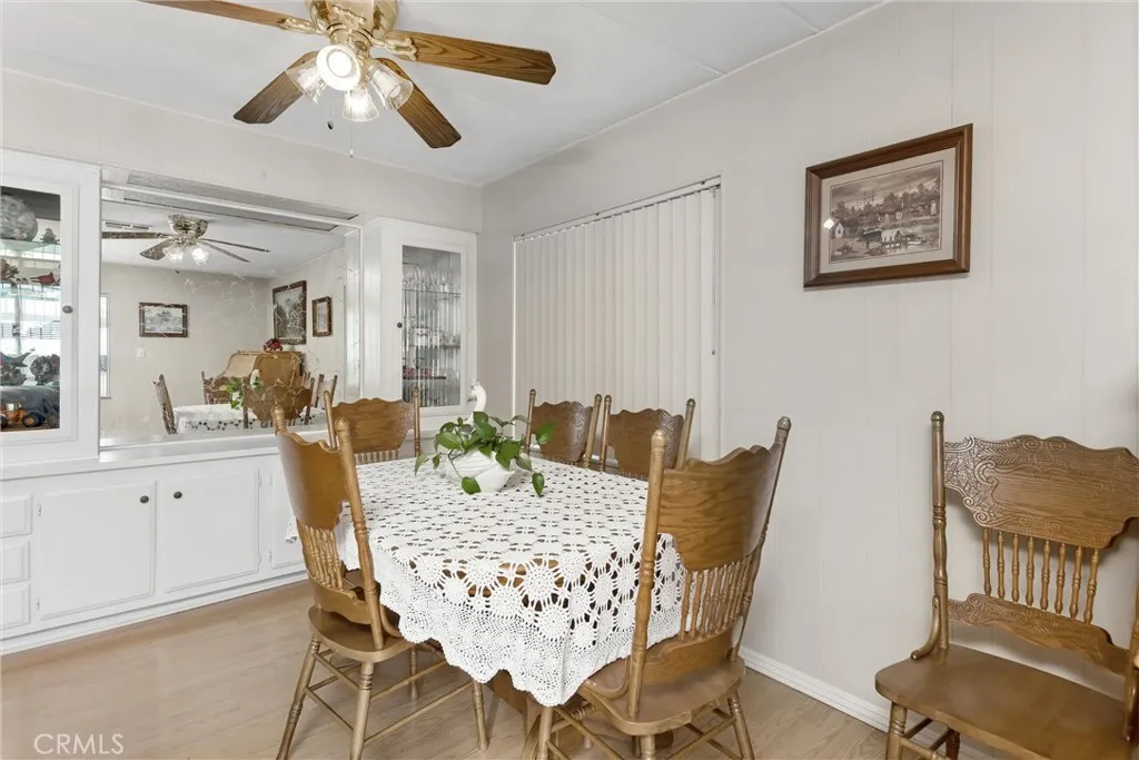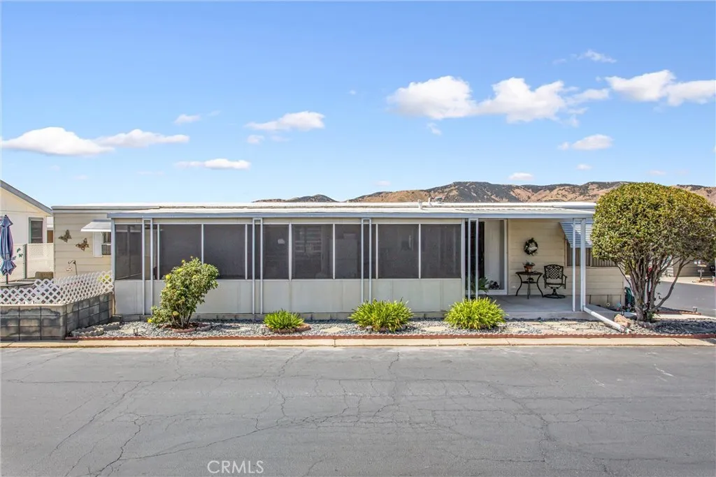 **Welcome to this beautifully maintained home located in the highly sought-after El Dorado Palm active adult 55+ community, offering comfort, convenience, and a vibrant lifestyle.*** This spacious 2-bedroom, 2-bathroom home features 1344 square feet of living space with light and open floor plan with a large living room/ formal dining area with built-ins, and seamless flow throughoutperfect for both everyday living and entertaining. The kitchen offers a good amount cabinetry, generous counter space, a center island (if you want it), and comes equipped with a gas range. The refrigerator is also included, making this home truly move-in ready. The primary suite is generously sized and features dual closets, a single sink vanity, a soaking tub/shower for added comfort. The secondary bedroom includes its own attached bathroom with a walk-in showerideal for guests or flexible living arrangements. Additional highlights include an indoor laundry room with 220 hookups and built-in shelving, plus a beautifully enclosed and re-screened sunroom on a slab foundationcreating the perfect space to relax year-round. Step outside to a private patio and concrete court for bbqs, and fencing, ideal for low-maintenance living and accommodating small animals. A large detached workshop offers excellent potential and previously had electricity (currently not connected). The covered carport and overall pride of ownership throughout make this home a standout. Enjoy all the benefits of this welcoming 55+ community while living in a home that blends space, comfort, and functionality.