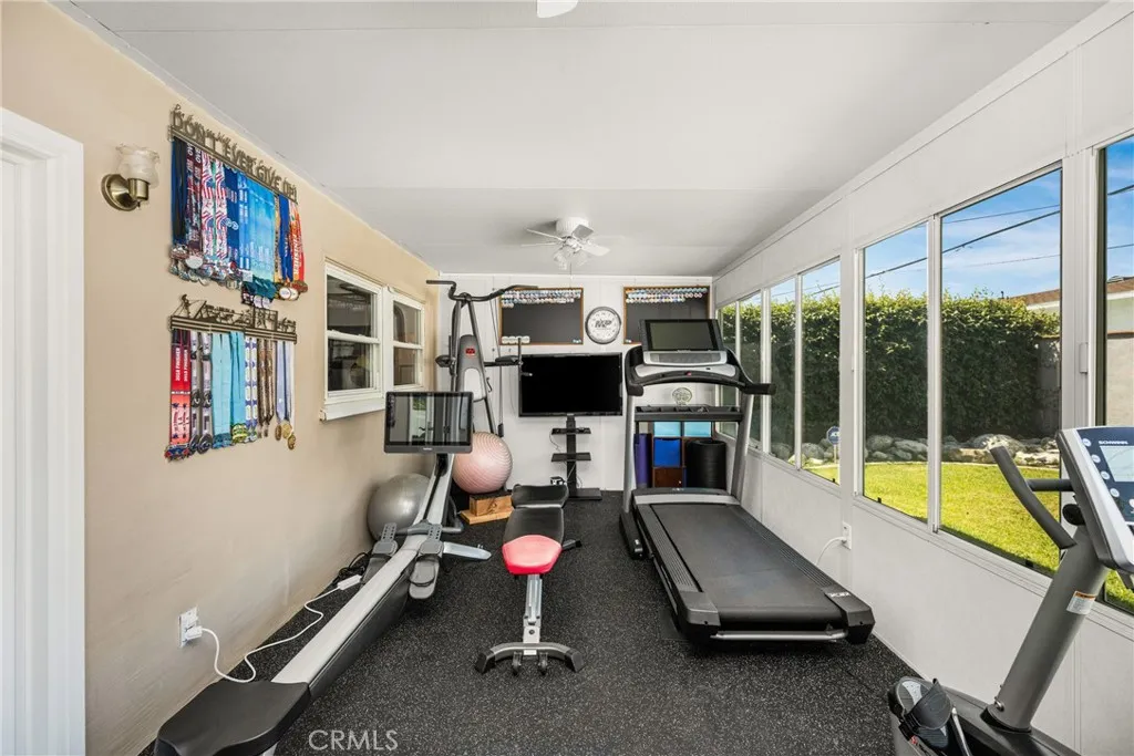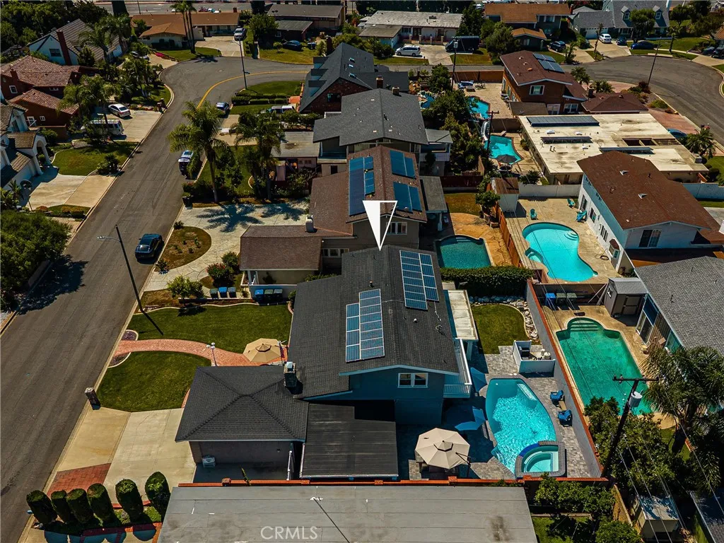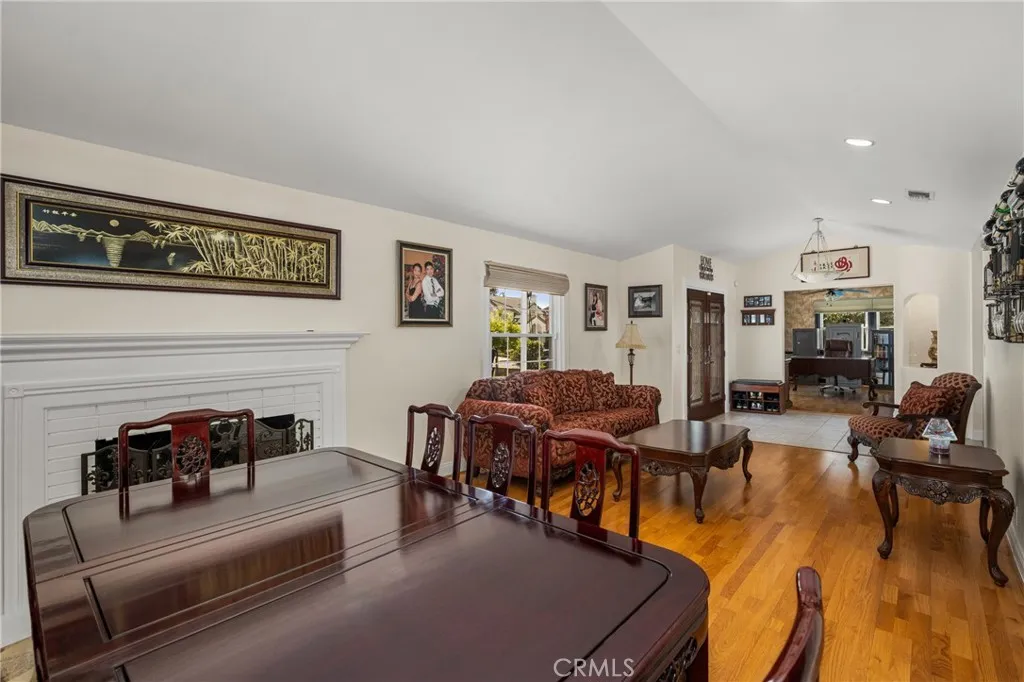 Nestled in the prestigious Los Coyotes Country Club community, this beautifully upgraded home offers nearly 2,600 square feet of well-designed living space with 4 bedrooms and 3 bathrooms. One bedroom located downstairs is currently configured as a home office and can easily be converted back with the addition of a closet. Step through the double-door entry into a warm and inviting interior featuring tile flooring and rich wood floors on the main level, with wood laminate flooring upstairs. The spacious kitchen is designed for both functionality and style, showcasing wood cabinetry, tile countertops, a center island, a large pantry, and newer stainless steel appliances, including a five-burner cooktop. The dining room features a charming wood-burning fireplace and is situated adjacent to the formal living room, perfect for gatherings, while the separate family room offers surround sound for an enhanced entertainment experience. Upstairs, the primary suite provides a relaxing retreat with a private deck and a beautifully appointed bathroom complete with a jetted tub, separate shower, and pedestal sink. A conveniently located upstairs laundry room adds everyday ease. Additional highlights include dual-pane windows, a permitted sunroom, newer HVAC system, upgraded electrical panel, whole-house water filtration system, and fresh interior and exterior paint. The outdoor space is truly exceptional. Recently remodeled front and backyard areas showcase a stunning pool and spa renovation completed just two years ago, featuring elegant brick pavers and a private covered patio. The ba