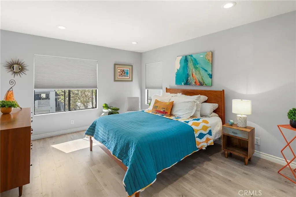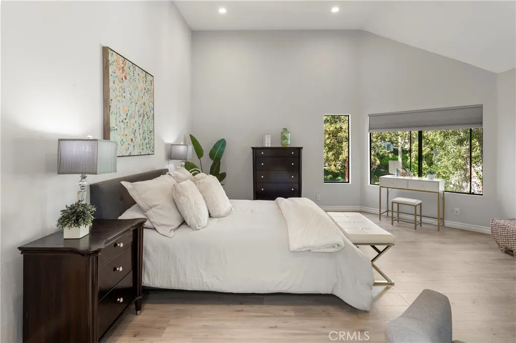 Situated in the sought-after hills of Orange, this stunning architectural residence delivers elevated living with refined design and inviting spaces. Upon entering this two-bedroom two and a half bath home, you're immediately greeted by an open-concept layout with multiple levels featuring a spacious living room with a sliding door that opens to a patio overlooking a green belt with mature trees, perfect for indoor-outdoor living. Expansive windows fill the home with an abundance of natural light, enhancing its warm and inviting atmosphere. The second level overlooks the living room and features a formal dining room area, kitchen has quartz countertops and stainless steel appliances, and flows into a versatile family room or office space with sliding doors leading to a spacious balcony. A separate landing provides the perfect space for a small office or reading nook. Both bedrooms are oversized ensuites, offering ample space, privacy, and an abundance of natural light. Additional highlights include a direct access 2 car garage, inside laundry and a half bath for guests. Home is located near Santiago Oaks Regional Park trails, hiking and bike trails. Resort style pool, spa and barbecues along with another pool and spa just for Stream House residents.