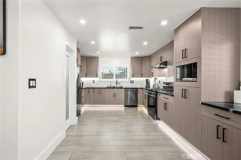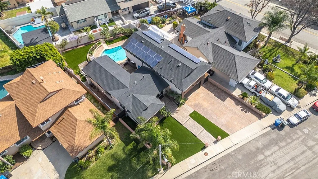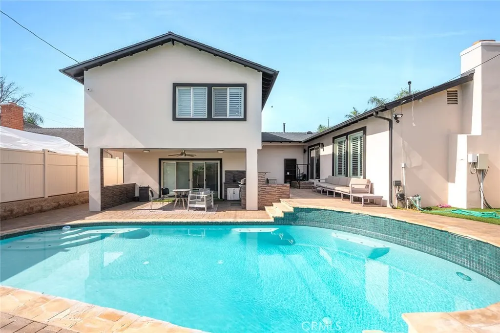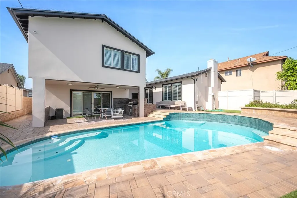 Beautifully upgraded 4-bedroom, 3-bath home offering 2,637 sq ft of modern luxury and thoughtful design. This turnkey property is loaded with high-end features and smart upgrades throughout. Enjoy peace of mind with a full camera system surrounding the home, complete with DVR and remote viewing. A whole-house filtration system (valued at $7,500) adds comfort and quality to everyday living. The interior boasts brand-new kitchen cabinets, striking accent walls with custom finishes, sleek black chrome appliances, and a spacious pantry ideal for storage and organization. Additional highlights include a large coat closet, wet bar, and ultra-soft carpeting. The home features beautifully upgraded bathrooms with digital showers, modern finishes, and updated flooring, along with a stylish new staircase and railing. Fresh interior and exterior paint, LED lighting throughout, and a brand-new tankless water heater enhance both style and efficiency. Step outside to your private backyard retreat featuring a pool with a new pump and finish, built-in BBQ with island, built-in fire wall, and elegant landscape lightingperfect for entertaining. The custom marble-look garage flooring adds a polished touch. With walk-in closets, smart home features, and premium upgrades at every turn, this home offers the perfect blend of comfort, technology, and style in a highly desirable location.