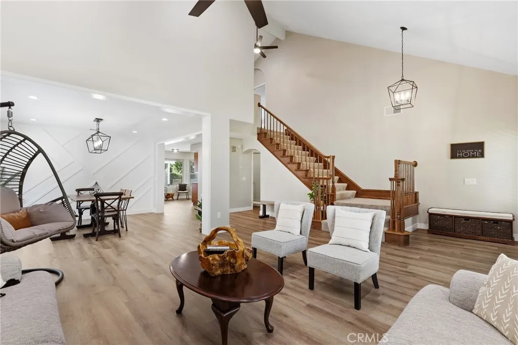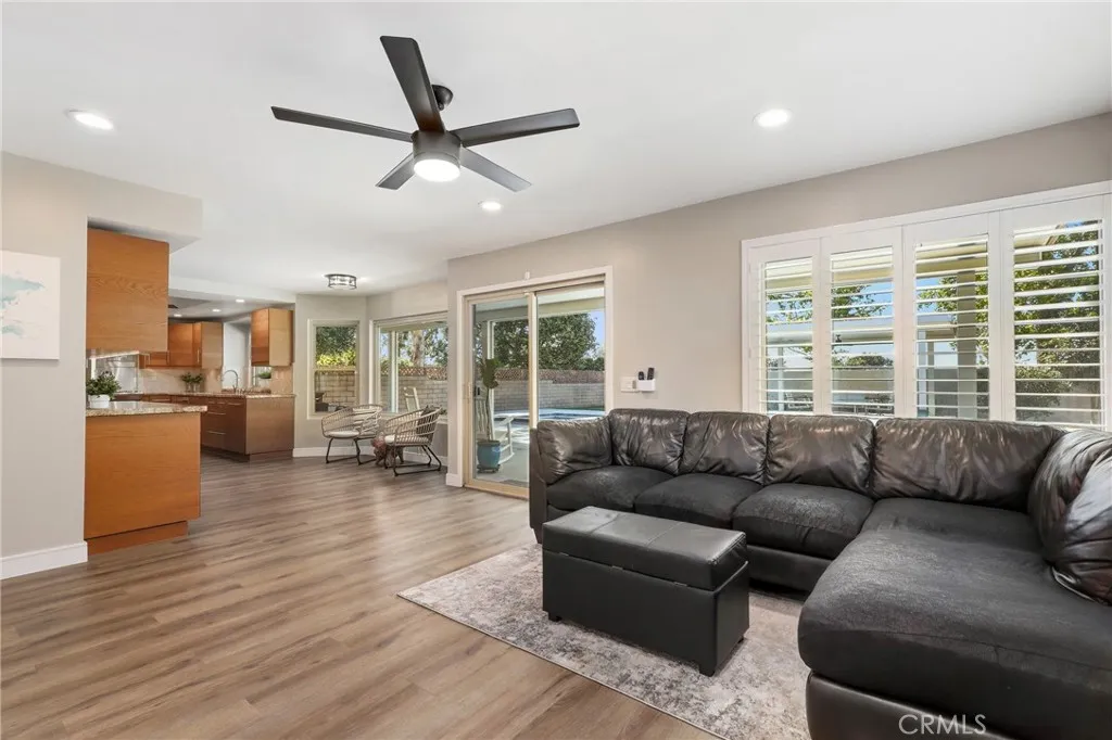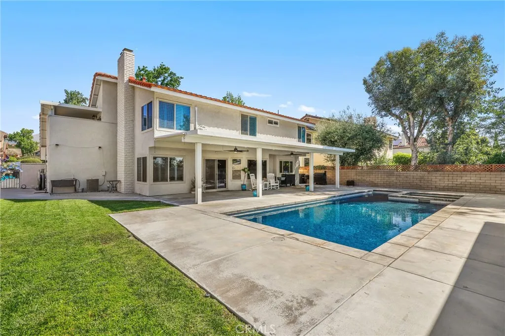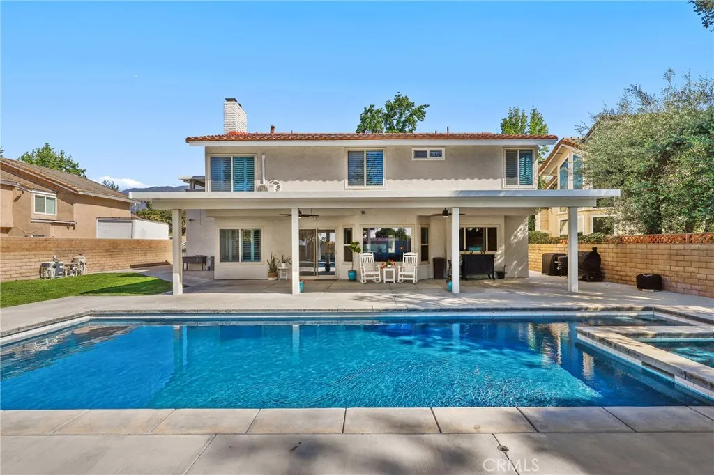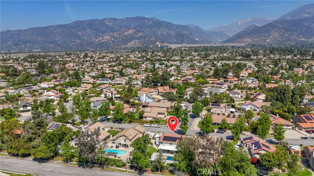 Nestled in a quiet, highly desirable neighborhood of Upland, this beautifully upgraded pool home offers the perfect blend of comfort, style, and functionality. From the moment you arrive, the stunning curb appeal, spacious 3-car garage, and wide drivewaycomplete with RV potentialset the tone for what awaits inside. Step through the front double door entry to soaring vaulted cathedral ceilings and an inviting formal living and dining area, filled with natural light and enhanced by updated lighting fixtures and ceiling fans throughout. The main level showcases attractive luxury vinyl flooring and a thoughtfully designed floor plan, including a charmingly updated guest bathroom. At the heart of the home is the upgraded kitchen, featuring stainless steel appliances, a built-in refrigerator and freezer, a cozy breakfast nook, and a convenient built-in buffet counter offering abundant storage. The kitchen flows seamlessly into the family room, where a warm gas fireplace and custom built-in desks create a perfect space for relaxing or working from home. Both rooms overlook the serene backyard, creating a true indoor-outdoor connection. The backyard is a private retreat, complete with a beautifully updated pool and concrete decking, two covered patio areas, a lush lawn, mature fruit trees, and plenty of space for entertaining or unwinding in peace. Upstairs, the oversized primary suite offers a luxurious escape with its own gas fireplace, generous closet space, and an updated en-suite bathroom featuring dual sinks, a large walk-in shower, and a separate soaking tub. Three additiona