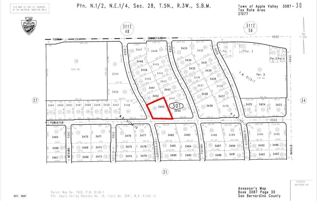 0.96ac Multi-Family zoned vacant land offering. Situated at the northeast corner of Powhatan Rd & Rancherias Rd in the Town of Apple Valley. Zoning is R-M (Multi-Family Residential) allowing up to 20 units per acre. Curb, gutter, and sidewalk already existing along the south side of the parcel fronting on Powhatan Rd. Just one block south of Yucca Loma Elementary School. Close proximity to parks, goods, and services. All utilities in the street fronting the site. Excellent opportunity to acquire vacant land for future apartment or townhome development.