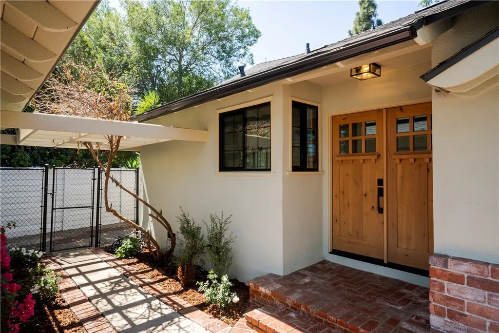Welcome to a fully reimagined Woodland Hills retreat, where every detail has been thoughtfully curated. From the moment you arrive, the fresh exterior, new roof, and custom landscaping set the tone. Clean, intentional, and effortlessly inviting. The new custom black grided windows frame the home with a modern edge, while the long, smooth driveway leads you into a space that immediately feels like your own. Step through the double-swing alder doors and into the open and luminous space. Wide plank LVP flooring, inspired by the French Riviera, flows seamlessly throughout, grounding the home in both style and comfort. The kitchen is the heart; finished in soft seabreeze tones, complete with a farmhouse sink, custom cabinetry, and brand-new stainless steel appliances. Its the kind of space where mornings feel calm and evenings naturally gather. Every room tells a story of craftsmanship. Designer lighting, refined finishes, and intentional touches throughout. All new HVAC, Furnace, and so much more throughout this fully renovated home. Bathrooms feel like private escapes, featuring a rainfall shower wrapped in custom tile and a second space adorned with warm white oak cabinetry and artisan clay textures. Select bedrooms open through double swing doors, creating a quiet connection between indoor comfort and outdoor living. And then, the backyard. Expansive, private, and framed by mature trees that filter golden California light, its a space that invites you to slow down. Whether its hosting under the covered patio, enjoying the open lawn, or simply sitting in the stillness, this i