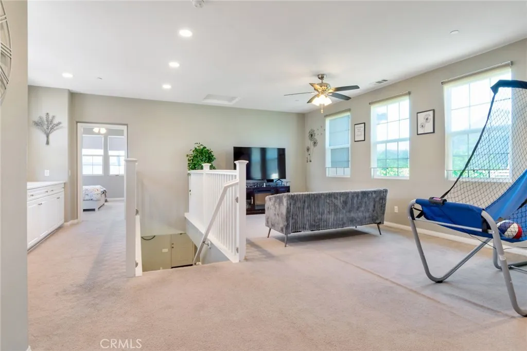 Located in the desirable McKenna Park community, this 5-bedroom, 3-bathroom home built in 2017 offers 2,809 square feet of well-designed living space with a clean, modern aesthetic. Two bedrooms and a full bathroom downstairs provide flexibility for guests, a home office, or multi-generational living. The main level features an open-concept layout with tile flooring and a functional flow between the living, dining, and kitchen areas. The kitchen is equipped with quartz countertops, ample cabinetry, and a center island that works well for both everyday use and casual gatherings. Upstairs, a spacious loft adds additional living space, while the primary suite includes a private balcony, a walk-in closet, and a comfortable, light-filled setting. The remaining bedrooms are well-proportioned and thoughtfully laid out. Additional features include a two-car garage with an EV-ready outlet, central HVAC, and access to community amenities such as a pool and clubhouse. Convenient drive to the 60 Freeway, shopping, and dining. Low HOA and no Mello-Roos.