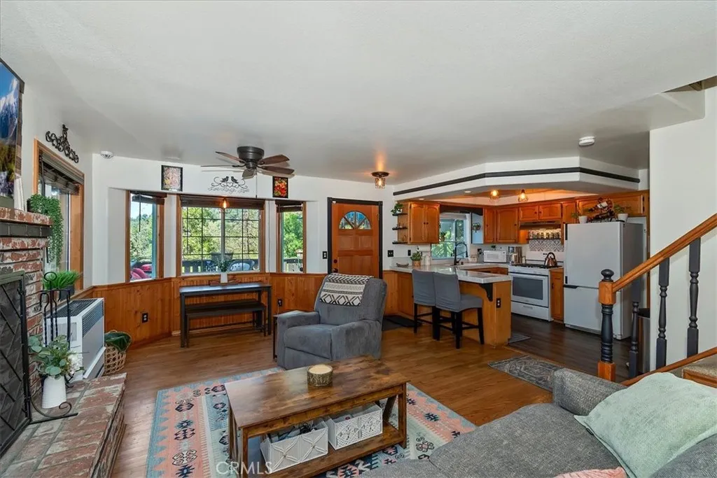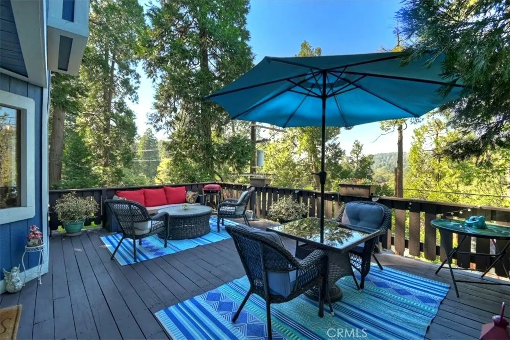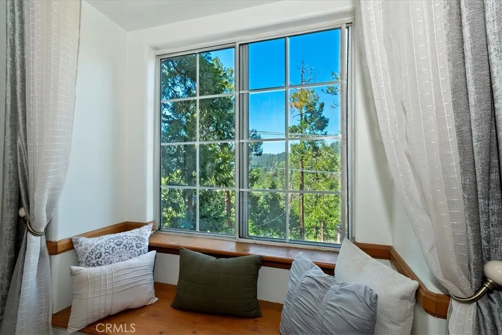 Your Crestline Mountain Escape! Turnkey, Walkable, and Ready to Enjoy. Are you dreaming of a mountain getaway where life feels a little slower, mornings are quieter, and everything you need is just within reach? This is it. Located in the heart of Crestline, this home is just a short walk to charming shops, cafs, and dining while also offering a commuter-friendly location on one of the first plowed roads in winter, along with an oversized concrete parking area that comfortably fits 23 vehicles, making year-round access easy and stress-free. Step inside and youll immediately feel at home. The main living space is warm and inviting, centered around a classic brick fireplace and filled with natural light. Large windows bring the outdoors in, while the open flow into the kitchen makes everyday living and entertaining feel effortless. The kitchen offers generous counter space, ample cabinetry, and a breakfast bar perfect for slow mornings or casual gatherings. Just off the living area, a cozy window-lined nook creates the perfect spot for morning coffee, a quiet workspace, or simply taking in the peaceful surroundings. Upstairs, the primary bedroom becomes a true retreat, featuring a charming reading nook overlooking the trees and surrounding views, an ideal place to unwind and reset. Two additional bedrooms and a beautifully updated bathroom with a walk-in shower provide comfortable space for guests or family, while the staircase itself adds character and a welcoming transition between levels. Outside, the expansive front deck becomes your second living space perfect for relaxi