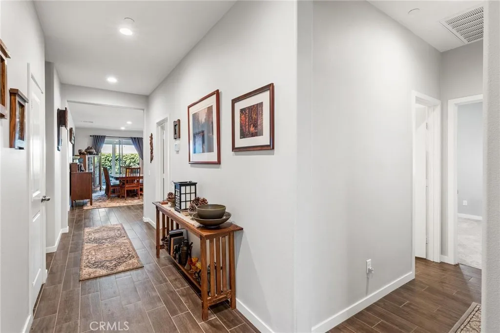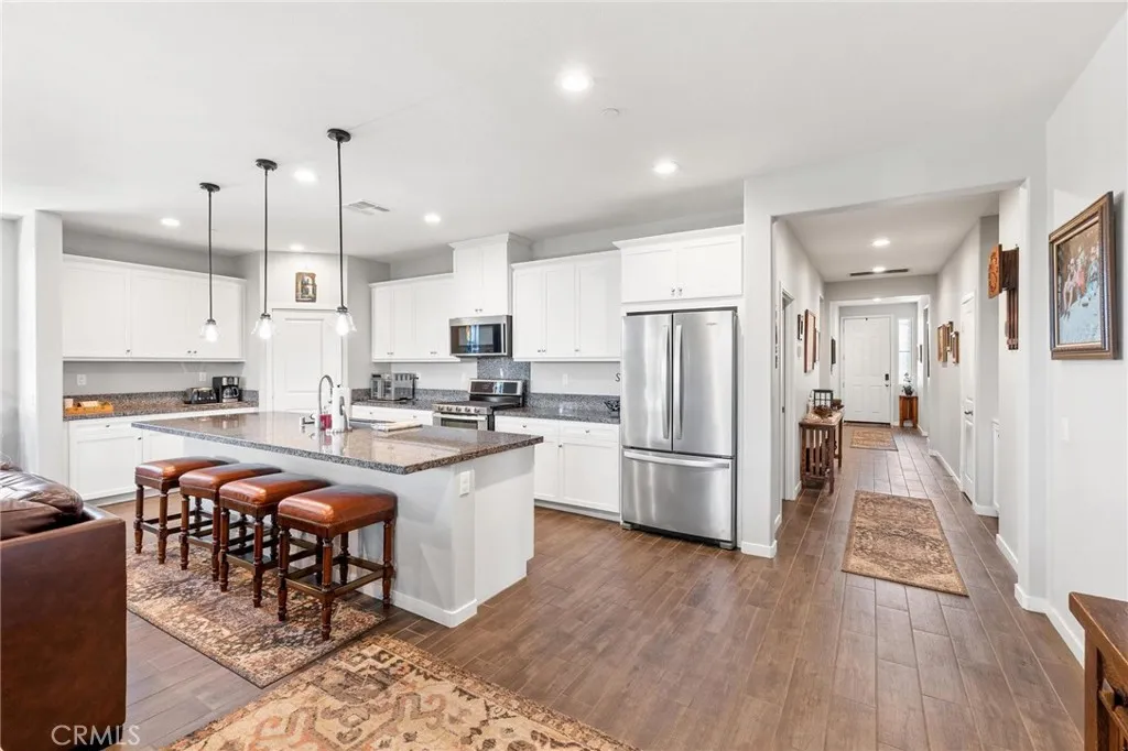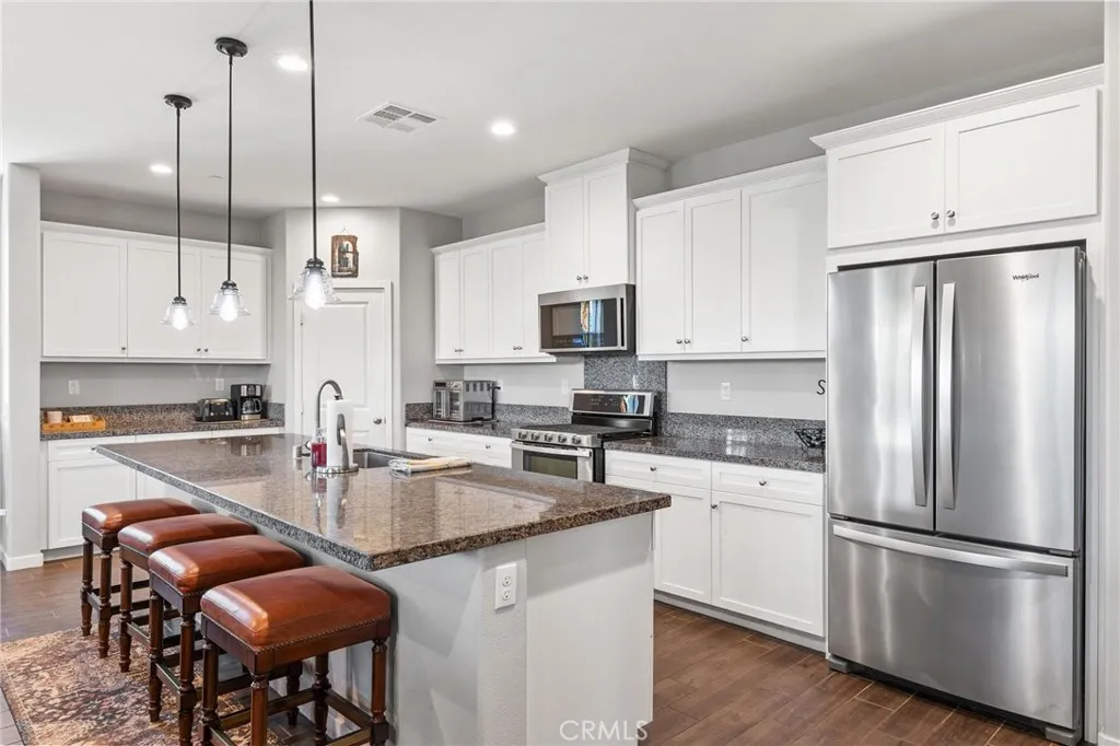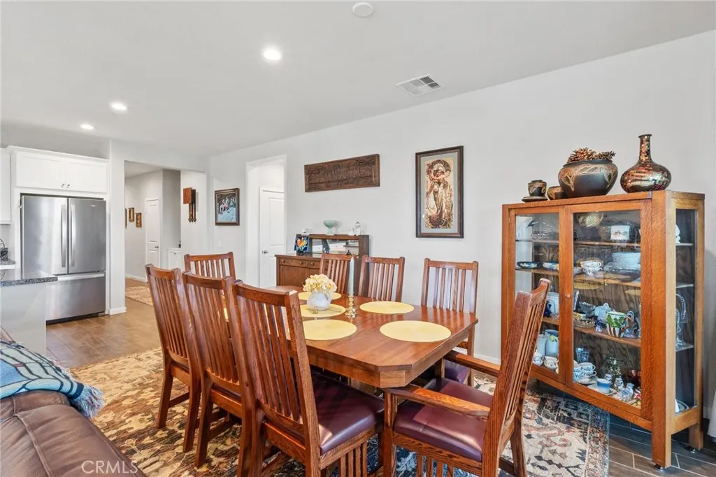Welcome to 34515 Velvetleaf St. in the highly desirable community of Heritage Ranch of Winchesteroffering nearly 2,100 sq. ft. of beautifully upgraded living space on an almost 8,000 sq. ft. lot with RV parking! This spacious 4-bedroom, 3-bath home (with one bedroom currently configured as a stylish bonus room) showcases a highly functional and open-concept floor plan perfect for both everyday living and entertaining. The stunning kitchen features gorgeous white cabinetry, granite countertops, stainless steel appliances, and seamlessly opens to the expansive living room and dining areacreating a bright and inviting great room feel. Throughout the home, youll find numerous upgrades including custom interior paint, wood-tile flooring, carpeting, and modern light fixturesall reflecting true pride of ownership. The refrigerator, washer, and dryer are all included in the sale, adding convenience and value. Step outside to a beautifully designed backyard complete with stamped concrete, an alumiwood patio cover, above-ground spa, lush landscaping, and sprinkler systemperfect for relaxing or hosting. The backyard also includes a storage shed that will remain with the property. The RV parking is a standout feature, equipped with a 30-amp electrical hookup and its own dump stationideal for RV owners or those needing extra flexibility. The garage is equally well-appointed with overhead storage racks that are included, maximizing functionality and organization. Additionally, the home features a fully paid solar system, offering energy efficiency and long-term savings, along with a low