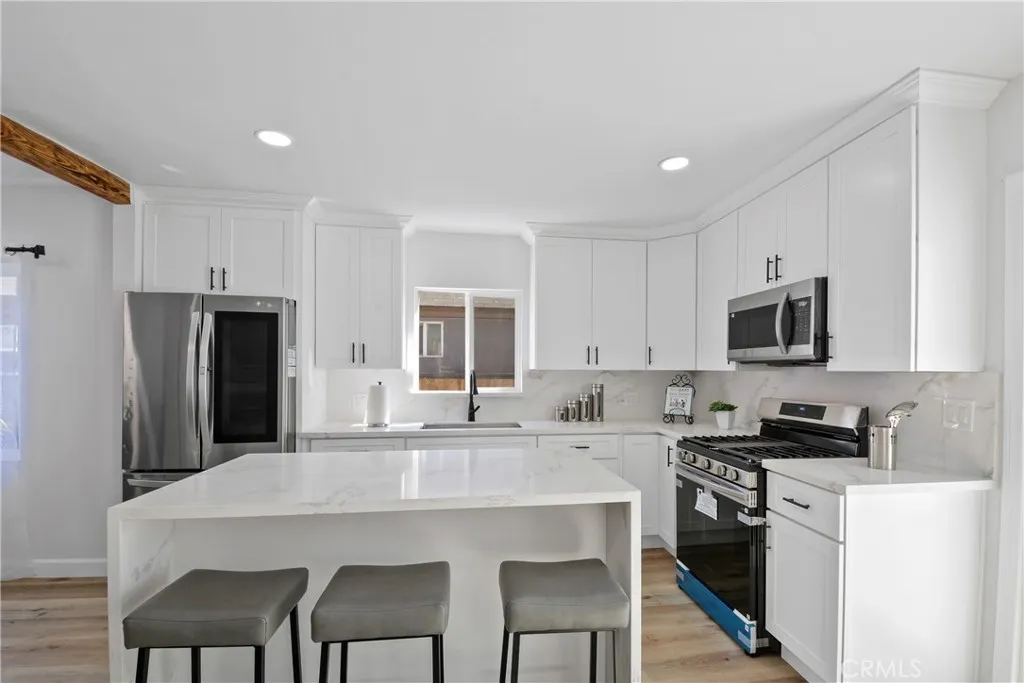Welcome to this beautifully remodeled 3-bedroom, 2-bathroom home offering 1,310 sq ft of modern living space on a generous 5,400 sq ft lot. From the moment you arrive, youll be impressed by the inviting curb appeal, fresh exterior paint, and newly landscaped front yard. Step inside to an open-concept floor plan filled with natural light, featuring new laminated wood flooring throughout and a spacious living area perfect for relaxing or entertaining. The stunning kitchen has been fully upgraded with new cabinetry, quartz countertops, and stainless steel appliances, complemented by a large center island that flows seamlessly into the dining area. Both bathrooms have been tastefully remodeled with contemporary finishes, creating a clean and modern feel. The bedrooms are well-sized, offering comfort and functionality for any lifestyle. Enjoy the expansive backyard, complete with new landscaping and a large patio areaideal for outdoor gatherings, entertaining, or future possibilities such as adding an ADU. The long driveway provides ample parking and flexibility. This turnkey home is a perfect opportunity for first-time buyers or investors looking for a move-in ready property with style, space, and potential.