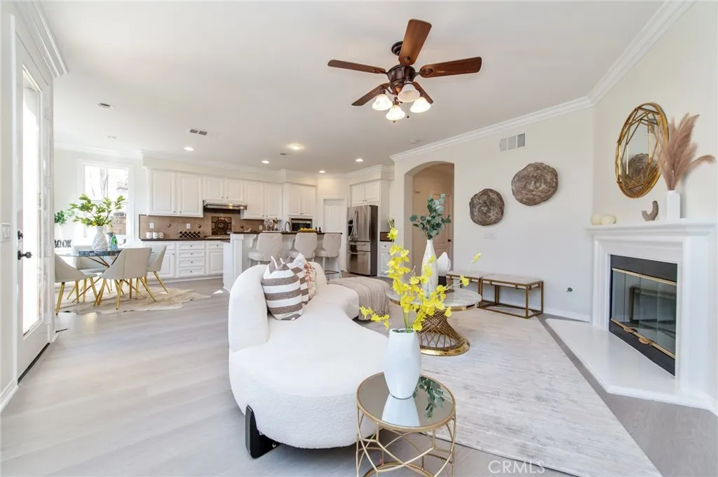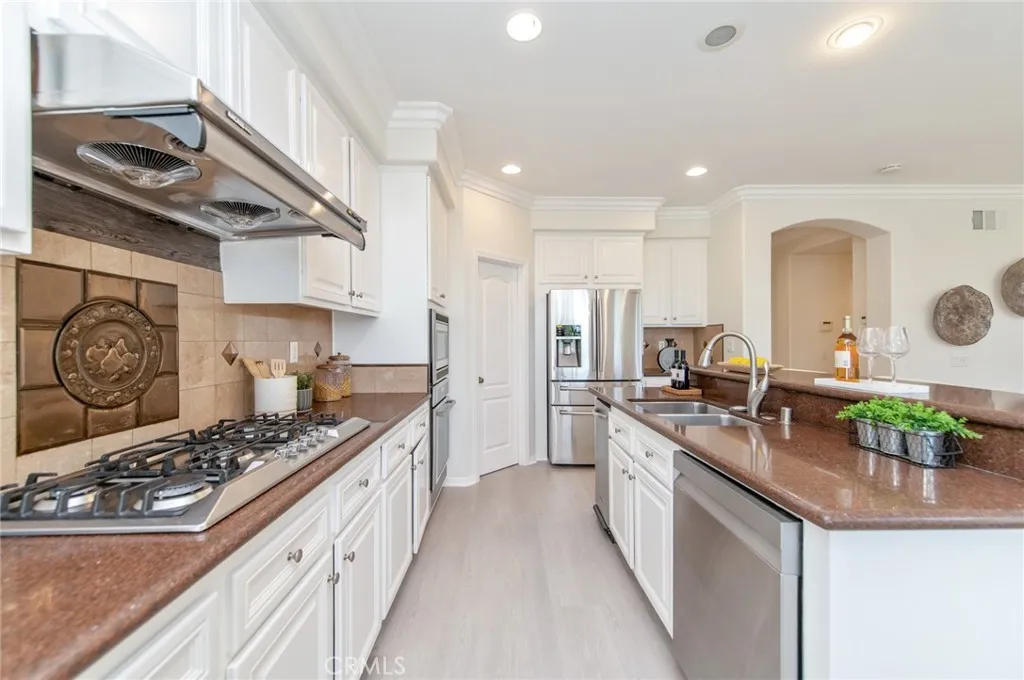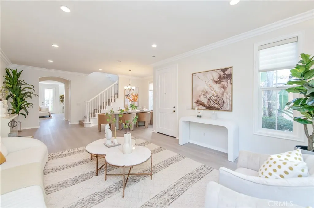Stunning city lights view home in the highly desirable Quail Hill community, featuring the sought-after Tapestry Plan 3 with over 3,100 square feet of beautifully upgraded living space. This elegant residence offers 5 bedrooms, including a convenient downstairs suite with a full bath and spacious walk-in closet; perfect for guests or multi-generational living. Step into a light-filled entry that opens to elegant formal living and dining areas, enhanced by new luxury vinyl plank flooring and tasteful finishes throughout. The gourmet kitchen is designed for both style and functionality, featuring granite countertops, stainless steel appliances, and a large walk-in pantry. The kitchen flows seamlessly into the inviting family room, creating an ideal space for everyday living and entertaining. Upstairs, you will find four generously sized bedrooms. The luxurious primary suite boasts a private balcony with breathtaking city lights views, along with a spa-inspired bathroom featuring dual vanities, a soaking tub, separate shower and walk-in closet. The professionally landscaped backyard offers a tranquil outdoor retreat, with direct access from the downstairs bedroom through elegant French doors. Located within the award-winning Irvine Unified School District, including University High School. This home also benefits from low taxes and HOA fees. Residents of Quail Hill enjoy resort-style amenities including 3 pools, 5 parks, a fitness center and miles of scenic hiking trails. Enjoy close proximity to premier shopping, dining, entertainment, and the beautiful beaches of Laguna. A t