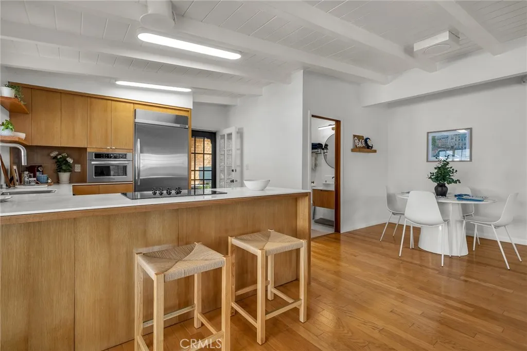 Well located on a quiet street in the much desired Seaside neighborhood of South Torrance, also known as the Christmas Lights Area and Sleepy Hollow. Enjoy the cool ocean breezes and close proximity to the beach, Riviera Village, shopping, restaurants and award winning schools. Walk into this freshly upgraded open concept floorplan with a fully remodeled kitchen including customized premium oak veneer, new GE electrical cooktop, new GE 30" convection oven, new GE dishwasher, new sink, garbage disposal and solid surface Corian countertop. There are also solid oak floating shelves and hardwood floors throughout. French doors off the living room lead to a covered side patio with white tile flooring, perfect for outdoor dining. Both bathrooms have been remodeled, one with a walk in shower and the other with a cast iron bathtub that was recently re-glazed. There are new shower heads, new vanity and toilets and new tile flooring. The detached garage has been fully finished as an office, study or guest room featuring washer/dryer, insulated walls and ceiling, hardwood floor and recessed lighting, also including water and power. The master suite includes a full bath and doors leading to a private and spacious backyard which includes a deck and pergola, ideal for enjoying the California lifestylewhether for quiet family time or lively gatherings.