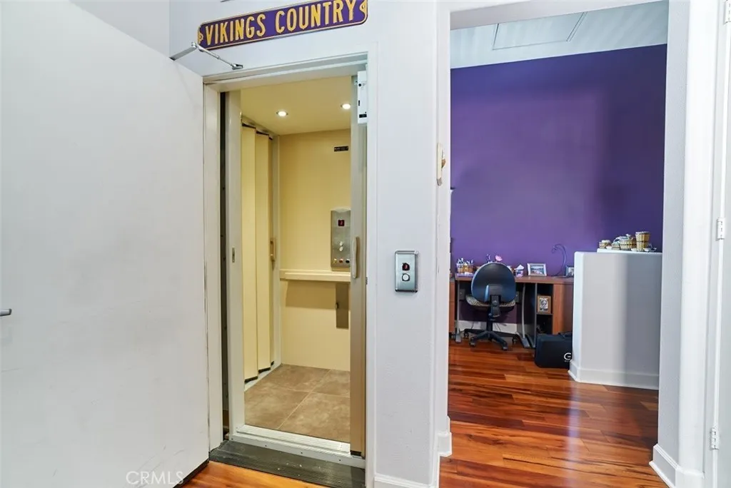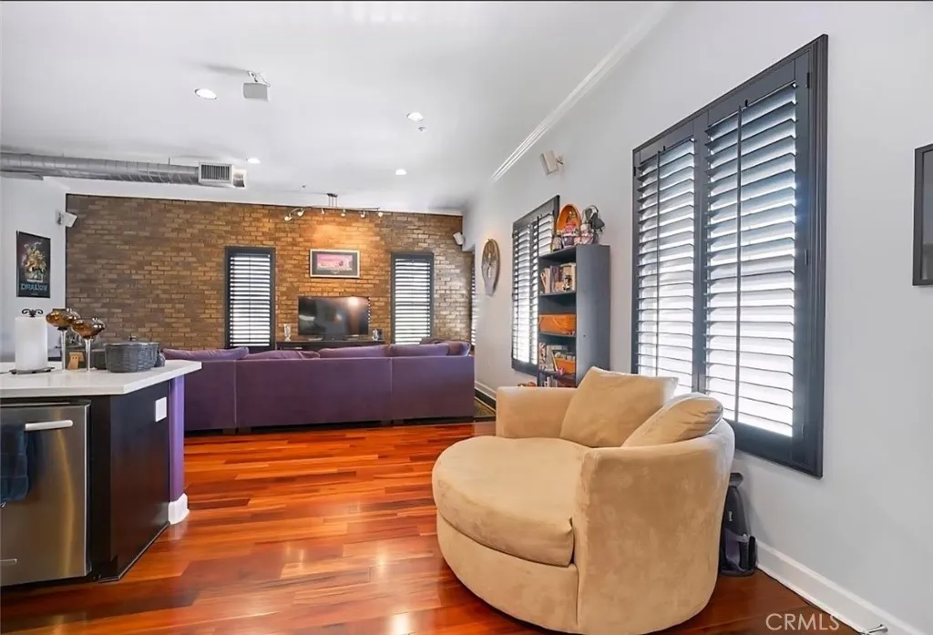 Beautifully upgraded end-unit luxury loft located in the highly desirable Soco Walk Community in Downtown Fullerton. This rare residence features private elevator access from both the garage and front entry, offering exceptional convenience and privacy. The home offers an open-concept layout with soaring ceilings, abundant natural light, and an industrial-modern design. Featuring 2 spacious bedrooms and 2 full bathrooms, this residence also includes a centrally located hallway laundry area for added functionality. Extensive upgrades throughout include custom high end kitchen cabinetry, quartz countertops, crown molding, custom plantation shutters, exposed brick accent walls, surround sound system, and custom hardwood flooring in all living areas. Large windows enhance the bright and airy atmosphere, making the space ideal for both everyday living and entertaining. The owner also installed a BRAND NEW WATER HEATER & GARBAGE DISPOSAL for the NEW HOME OWNER. Located just steps from the Fullerton MetroLink station and within close proximity to Downtown Fullertons restaurants, shopping, and entertainment, this home is perfect for those seeking a vibrant and convenient urban lifestyle. Turn-key and move-in ready. All appliances included, including refrigerator, washer, and dryer.