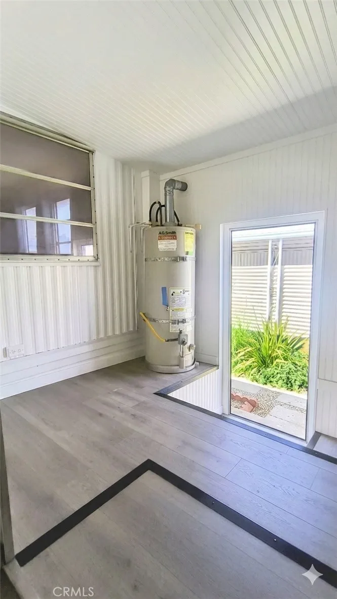 $395/month space rent. Read that again. That's one of the lowest in Northview and one of the lowest in all of Yucaipa's 55+ communities. Water, sewer, and trash are billed through the park separately. Gas and Electric go directly to you. Now walk inside this great North Bench home. Every surface has been refreshed top to bottom by a licensed General Contractor. New Mohawk luxury vinyl plank flooring runs through virtually every room. Fresh dark countertops, a new stainless sink with disposal, and a breakfast bar that brings the kitchen and living space together into one open concept, the way people actually want to live. Crisp white cabinetry with decorative scallop detailing and matte black hardware fills the kitchen floor to ceiling. A full-size built-in china hutch with glass-front doors anchors the dining area. And then the space hits you. Pop-out expansions running virtually the entire length of the home push it to a full 20 feet wide. HCD registers it as a single-wide you get the benefit of reduced registration fees every year, but it lives like a double. You feel it the moment you step into the great room. Vaulted ceilings. Modern ceiling fans. Light pouring in from every direction. This is not the mobile home you're picturing. This is the one that changes your mind. Two bedrooms sit side by side off a private hallway. Both feature gray accent walls and built-in closet systems with sliding doors and drawer storage underneath. The master takes it further with closets spanning two full walls, floor to ceiling. No furniture needed. Central heat and air to keep you comfo