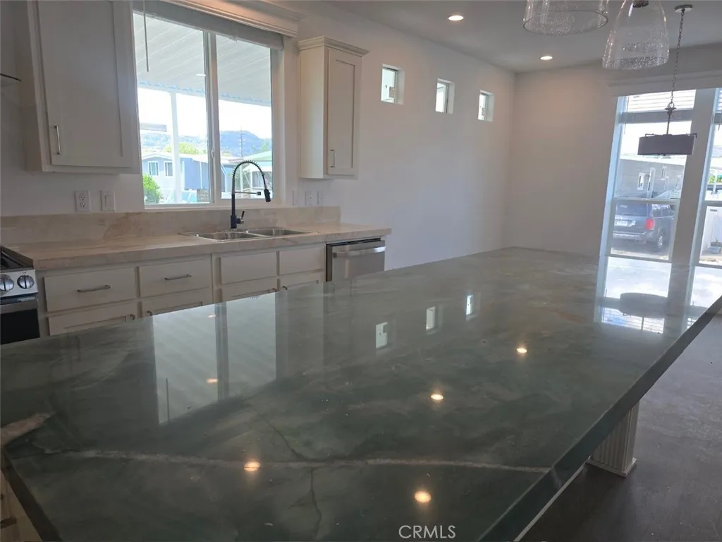 Brand New 1800 Sq. Foot ARCHITECTURAL work of Art. This home has incredibly LOW land rent of $780 per month that is on a huge lot. The home has 3 large bedrooms and 2 opulent bathrooms. Near 10 foot flat ceiling through entire home. Bathed in light with a open floor plan. Huge chefs island gourmet kitchen, featuring INCREDIBLE Quartzite natural stone counters. Soft closing custom cabinets and drawers, HUGE walk-in Pantry. State of the art steel appliances. Extra large living room, that is great for entertaining. Also including extra large dining room, big enough for even the largest family gatherings. . Large master bedroom, with generous walk-in closet. Spa-like master bath, with large stone shower, his and her sinks, natural Quartzite stone counters, and private toilet room There are 2 additional large bedrooms. Land Rent locked in by Rent Control. NO HOA dues to pay. NO regular California Property Taxes to pay. 3 car covered parking. 6 foot fences permitted. Quiet, gated, friendly community. Beautiful clubhouse and pool for your use. INCREDIBLY ENERGY EFFICIENT HOME.