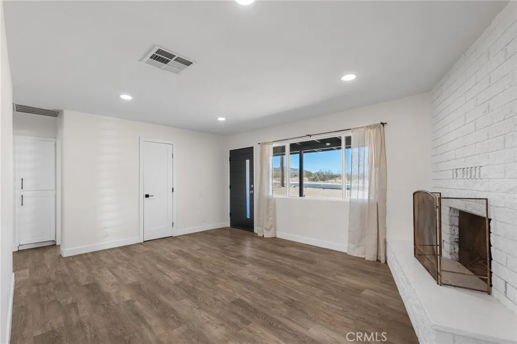Welcome to 7433 Sage Ave in the heart of Yucca Valley, a charming and well maintained home offering comfort, style, and a highly convenient location. Built in 1965 and set on a generous .39 acre lot, this approximately 1,600 square foot home features 2 bedrooms, 1 bathroom, a 2 car attached garage, and a fully fenced backyard, all connected to sewer for added convenience and peace of mind. A small covered front patio with a mid century inspired block wall creates a welcoming first impression and a perfect spot to enjoy your morning coffee or take in the desert sunsets. Inside, the home has been thoughtfully updated with durable vinyl flooring throughout and recessed lighting in the kitchen and living area, creating a clean and modern feel, while central heating and air conditioning provide year round comfort. The main living room is warm and inviting, highlighted by a beautiful corner stone wood burning fireplace that adds character and charm. A second living space filled with natural light offers excellent flexibility and could easily function as an additional bedroom, home office, or creative studio. The kitchen is both stylish and functional with a U shaped layout, featuring white shaker cabinetry, quartz countertops, and an electric range. Just off the kitchen, the dining area is cozy yet practical, offering the perfect space for everyday meals or intimate gatherings. Both bedrooms are comfortably sized with ample closet space and great natural light. The bathroom stands out with eye catching geometric tile flooring, a shower and tub combination, and classic white subwa