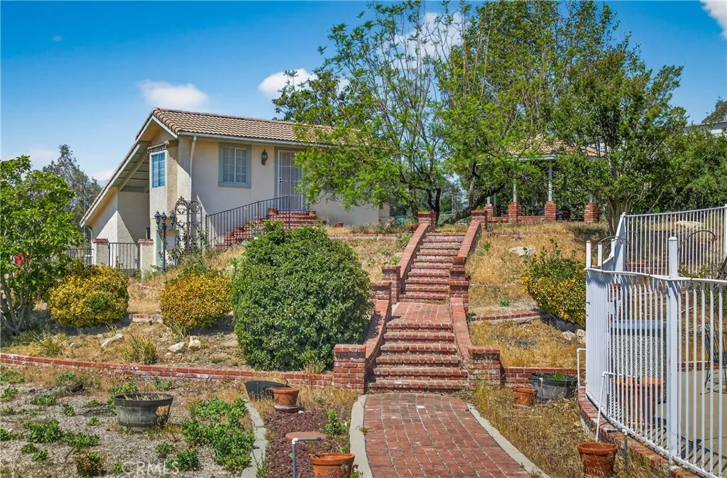 Horse loversthis is your dream property! This expansive estate situated on 1 acre, offers the perfect blend of comfort, functionality, and entertainment. Designed with equestrian living in mind, the property features 3 horse barns, a washing station, a spacious tack room, and feed room with access via garage door. Enjoy a fully equipped horse arena and walkereverything you need to bring your equestrian vision to life. The outdoor space is equally impressive, offering ample room for entertaining, a sparkling swimming pool, and a separate ADUideal for guests, extended family, or rental income. Inside, the thoughtfully designed split floor plan provides privacy and flexibility. The primary suite is situated on its own wing and features a luxurious bathroom with a large soaking tub, separate shower, and a very large custom-built walk-in closet. On the opposite side of the home, youll find 3 additional bedrooms and a spacious bathroom with direct pool accessperfect for seamless indoor-outdoor entertaining. Additional highlights include RV parking and easy vehicle access to the barn, allowing for convenient movement of horses and feed directly into a separate garage. Built with a strong emphasis on quality craftsmanship, this home is ready for your personal finishing touches. A rare gem located in a highly sought-after, exclusive area of Verdemont Heightsopportunities like this dont come around often. Close proximity to 215/15 freeway access, CSUSB, Victoria Gardens, and so much more.