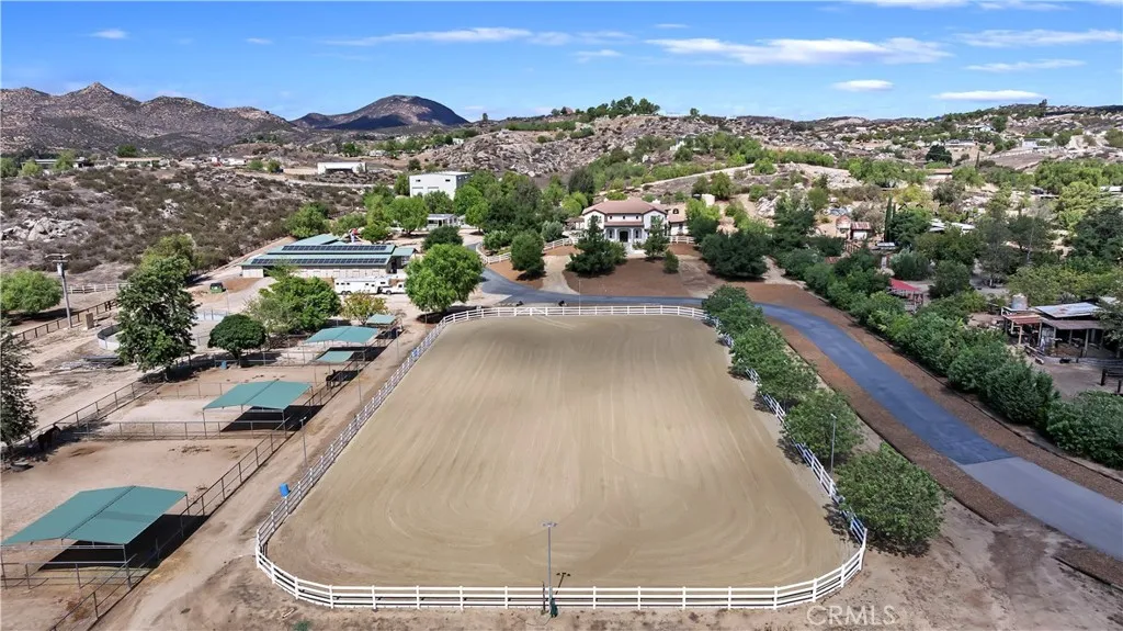Exceptional custom estate in the Heart of Temecula Wine Country Welcome to Fallen Oak Ranchan extraordinary equestrian estate perfectly situated in Temeculas Wine Country, just minutes from award-winning wineries, restaurants, & shopping. The custom-built main residence blends rustic charm with modern sophistication. The designer chefs kitchen is a showpiece with exposed brick walls, sleek quartz counters, a rich wood-topped island with built-in storage, farmhouse sink, & top-of-the-line stainless appliances including a professional-grade range & oversized refrigerator. Gold hardware, custom cabinetry, & designer lighting create a warm yet refined atmosphereideal for entertaining or everyday living. The formal dining room is timeless & inviting with custom wainscoting, soft wallpaper, exposed beams, & a statement chandelier. Natural light pours through plantation shutters onto warm wood floors & a built-in buffet with open shelvingperfect for elegant dinners or festive gatherings. The family room offers relaxed sophistication with a stone fireplace, custom built-ins, & natural light. Plantation shutters, crown molding, & wood floors complete the picture, creating a space thats both stylish & comfortable. The home includes five spacious bedrooms, five baths, & an office. The luxurious primary suite features a cozy fireplace, wood-paneled ceiling, dual walk-in closets, & a spa-inspired bath with jacuzzi tub & large shower. Additional highlights include surround sound, plantation shutters, dual A/C units, & expansive covered patios for outdoor entertaining. A separate manufact