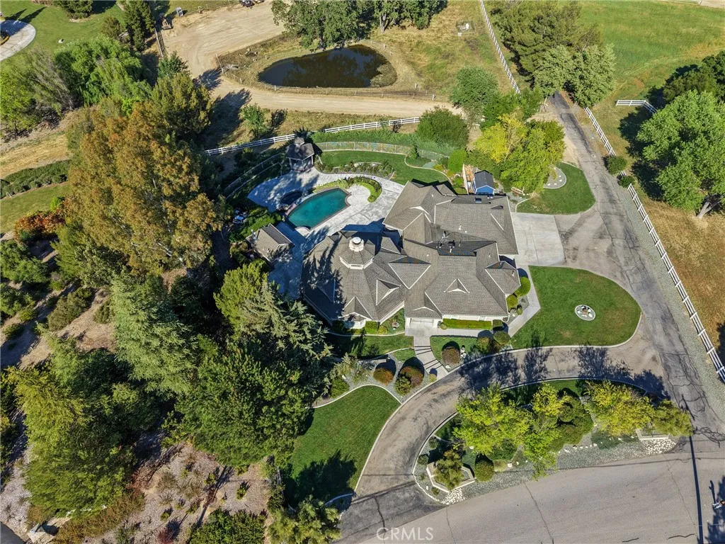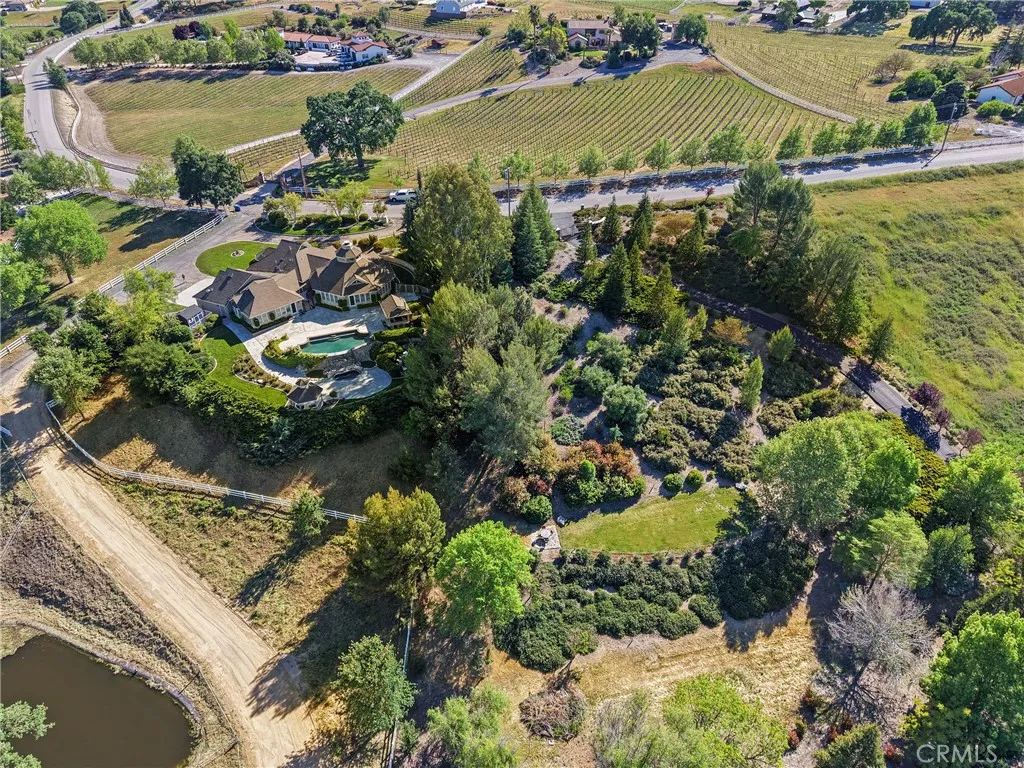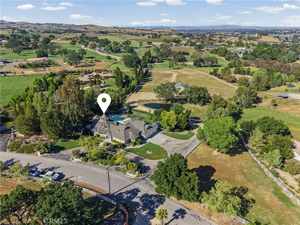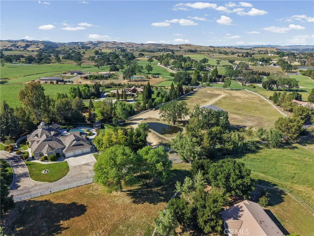 Located in the highly sought-after Peterson Ranch community of west Templeton, this exceptional 5.5 acre estate offers a rare blend of privacy, scale, and sweeping vineyard-studded views. The beautifully newly remodeled 3,390 sq ft custom home features 4 bedrooms and 5 bathrooms, with an open, light-filled design that captures the surrounding landscape from nearly every room. A dramatic rotunda-style great room with soaring wood-beamed ceilings and a statement fireplace anchors the home, seamlessly connecting formal living and dining spaces to the gourmet kitchen; perfect for both everyday living and entertaining. The luxurious primary suite offers a private retreat with a sitting area/home office, dual walk-in closets, and a spa-inspired ensuite bath complete with a freestanding clawfoot soaking tub and dual vanities. Additional amenities include a wine cellar/butler's pantry, indoor laundry room, three-car garage, and a versatile loft space ideal as a private retreat, lounge, creative studio, or additional storage. Designed for true indoor-outdoor living, the property features a resort-style pool and spa with vanishing edge waterfall, a 150 sq ft pool house with outdoor cooking area and gazebo, and expansive entertaining spaces set against breathtaking Central Coast views. The lower acreage offers exceptional versatility with a man-made irrigation pond, a new 3,000 sq ft barn/shop built in 2022 with A/C, plumbing and electricity ideal for hobbyists, and ample room for agricultural or equestrian use. Served by TCSD water plus a private well for irrigation, and surrounded b